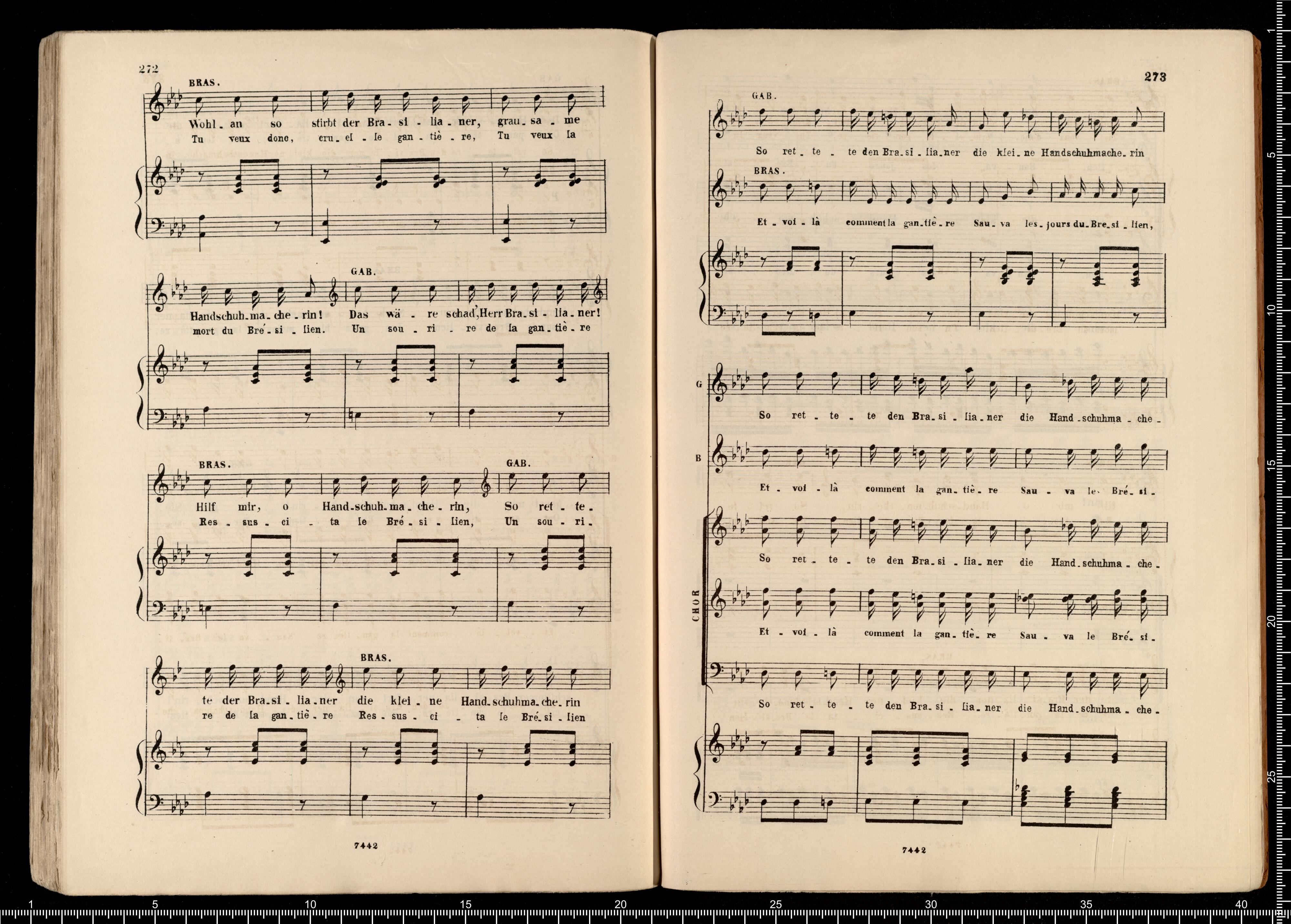 Biblithek | moderner Opern | im vollständigen Auszügen | für Gesang | und Pianoforte. | Offenbach, Pariser Leben. | ED.BOTE&G.BOCK. | Berlin | und Posen. | Lith. Anst. v. C.G.Röder,Leipzig