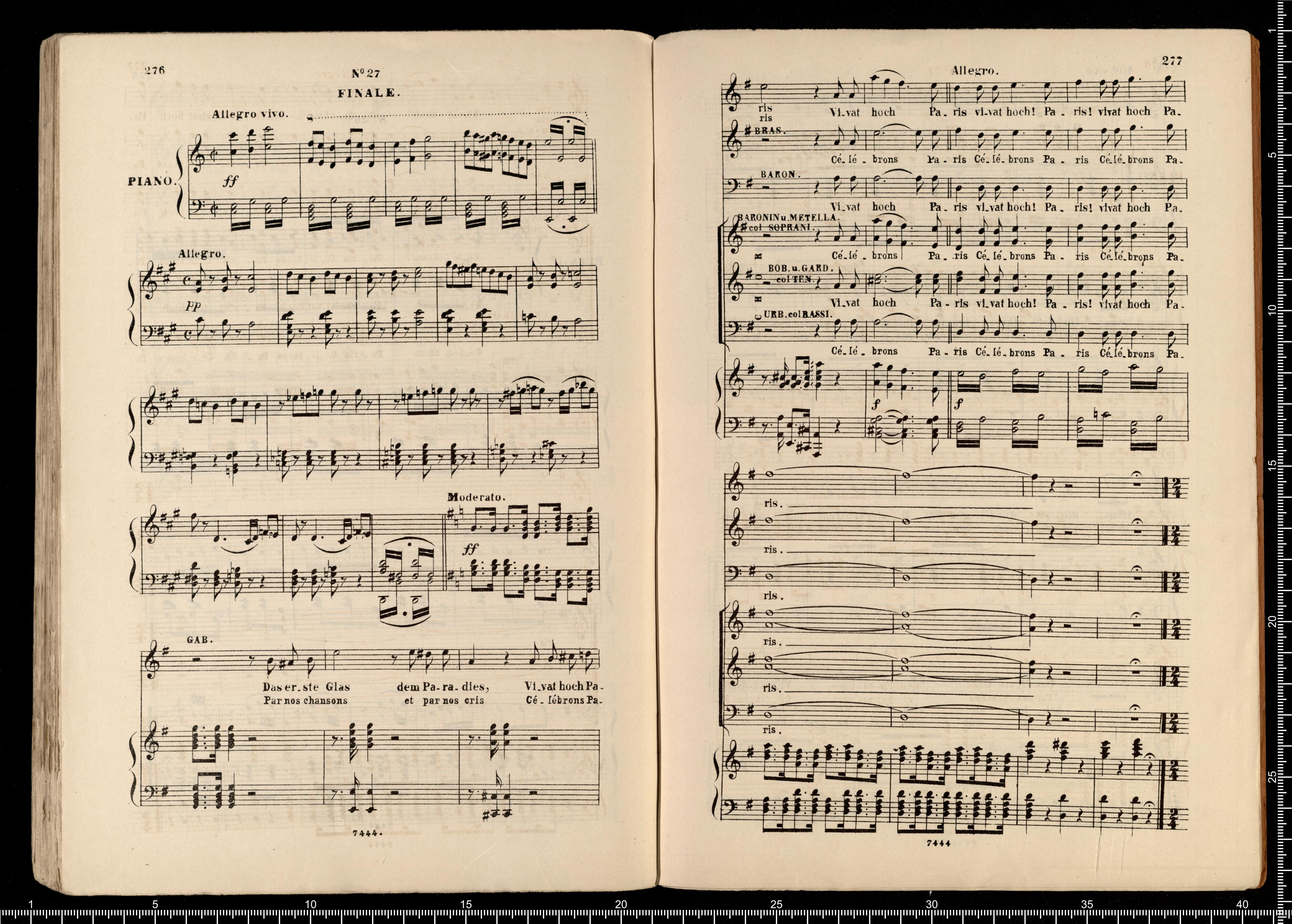 Biblithek | moderner Opern | im vollständigen Auszügen | für Gesang | und Pianoforte. | Offenbach, Pariser Leben. | ED.BOTE&G.BOCK. | Berlin | und Posen. | Lith. Anst. v. C.G.Röder,Leipzig