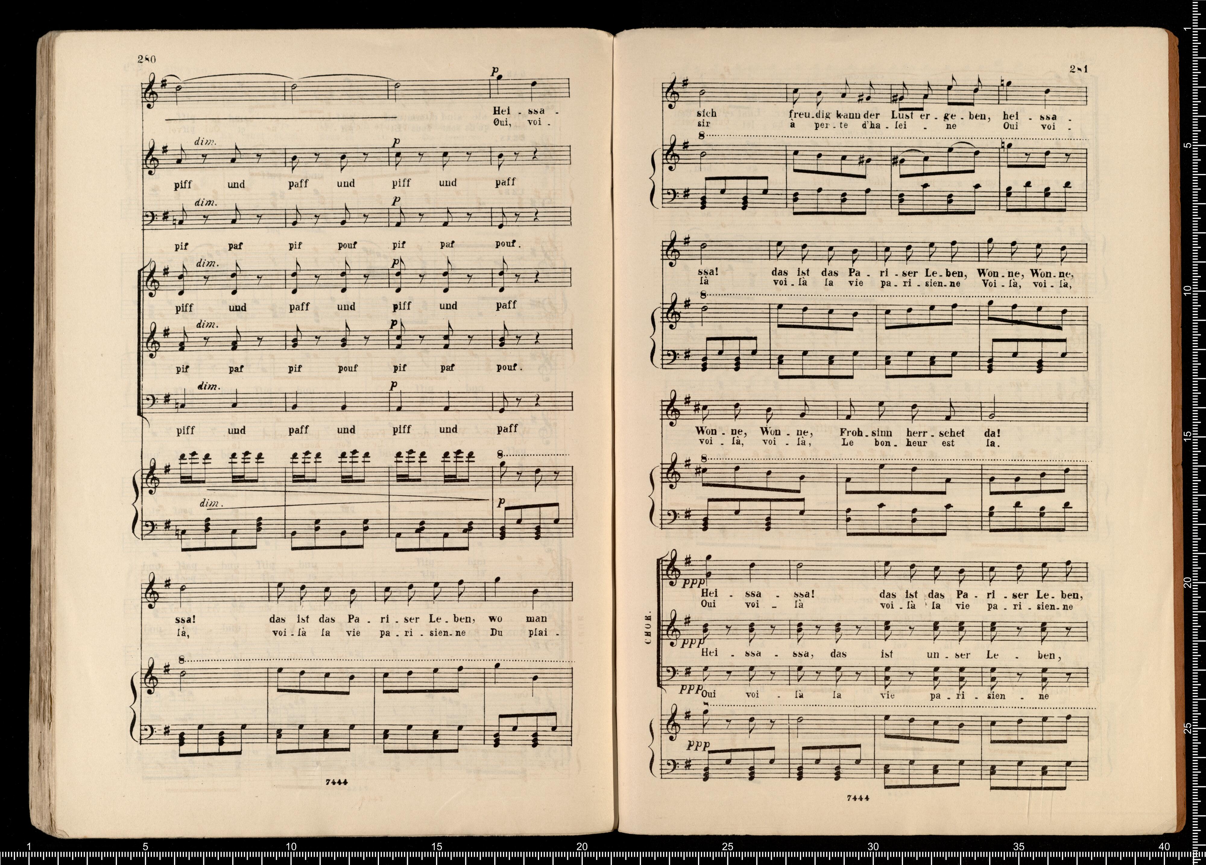 Biblithek | moderner Opern | im vollständigen Auszügen | für Gesang | und Pianoforte. | Offenbach, Pariser Leben. | ED.BOTE&G.BOCK. | Berlin | und Posen. | Lith. Anst. v. C.G.Röder,Leipzig