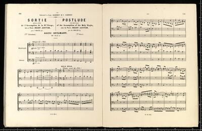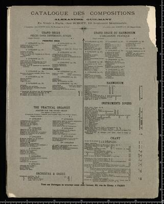 The Practical Organist | (L'Organiste Pratique) | Adapted for the | Grand Organ | Alex. Guilmant | 7|e Livraison Prix: 9|f, NEW EDITION ON THREE STAVES. | [left side:] L'Organiste Pratique | Collection de Pièces | POUR LE | GRAND ORGUE | PAR [right side:] The Practical Organist | a Collection of Pieces | FOR THE | GRAND ORGAN | BY | ALEXANDRE GUILMANT | Organiste de la Trinité, à Paris. | [left side:] Ouvrage adopté à l'Ecole | de Musique Religieuse | de Paris. | CHAQUE LIV|O|N: 9|f | Paris, Schott Editeur, | 19, Boulevard Montmartre, 19. | Mayence, les fils de B. SCHOTT. [right side:] Adopted by the School | of Sacred Music | in Paris. | 7_|e LIVRAISON | Bruxelles, SCHOTT frères, | 82, Montagne de la Cour, 82. | Londres, SCHOTT & C|o | et chez l'Auteur, 62, Rue de Clichy, Paris. | Propriété de l'Auteur pour tous pays. | Imp. CH. JOLY, Paris, The Practical Organist org