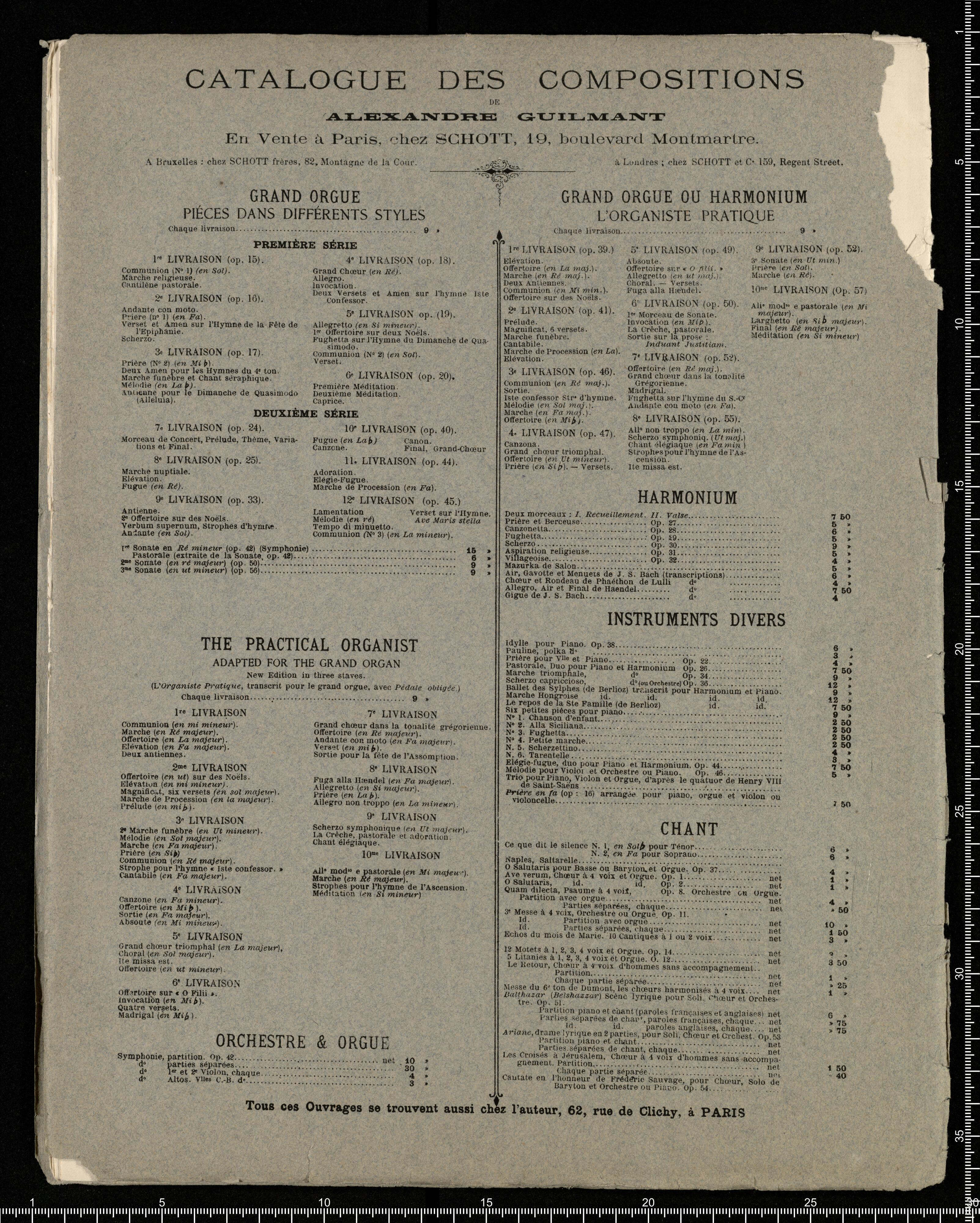 The Practical Organist | (L'Organiste Pratique) | Adapted for the | Grand Organ | Alex. Guilmant | 7|e Livraison Prix: 9|f