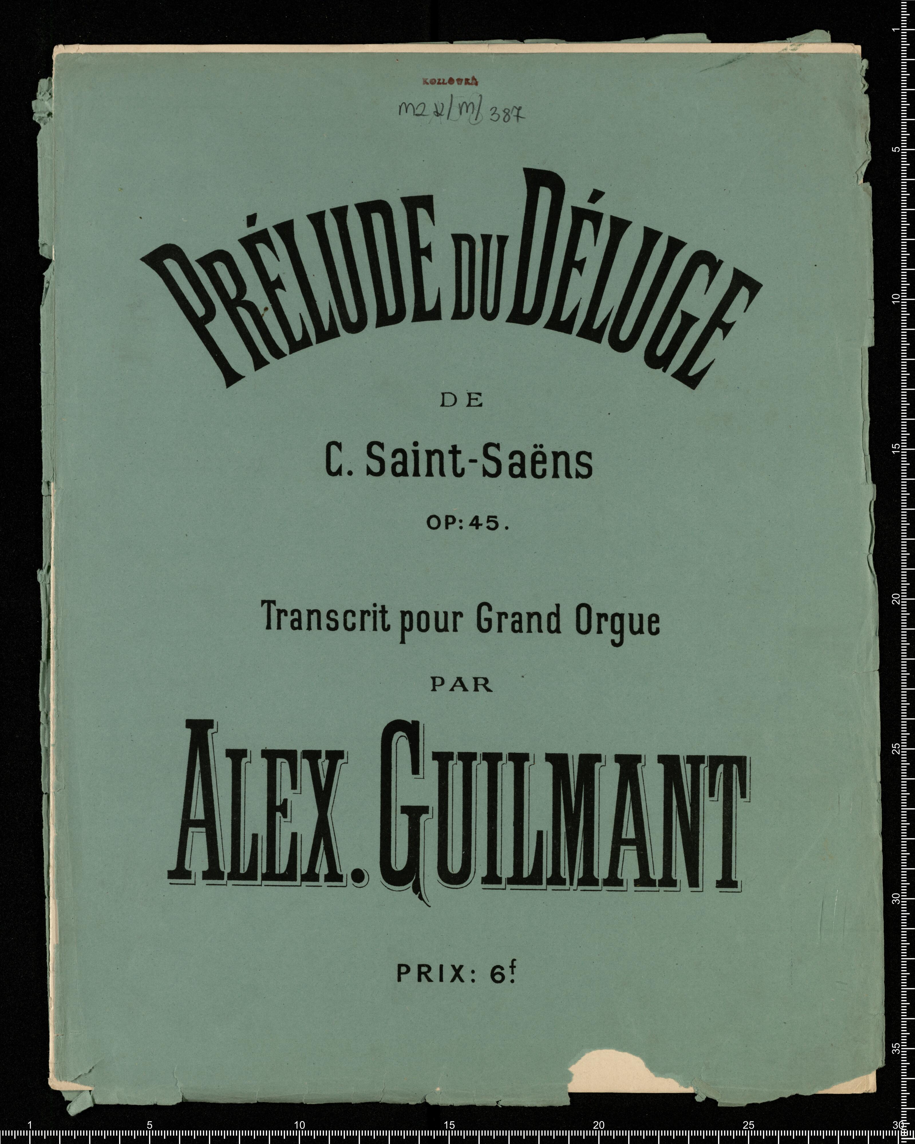PRÉLUDE du DÉLUGE | DE | C. Saint-Saëns | OP: 45. | Transcrit pour Grand Orgue | PAR | ALEX. GUILMANT | PRIX: 6|f
