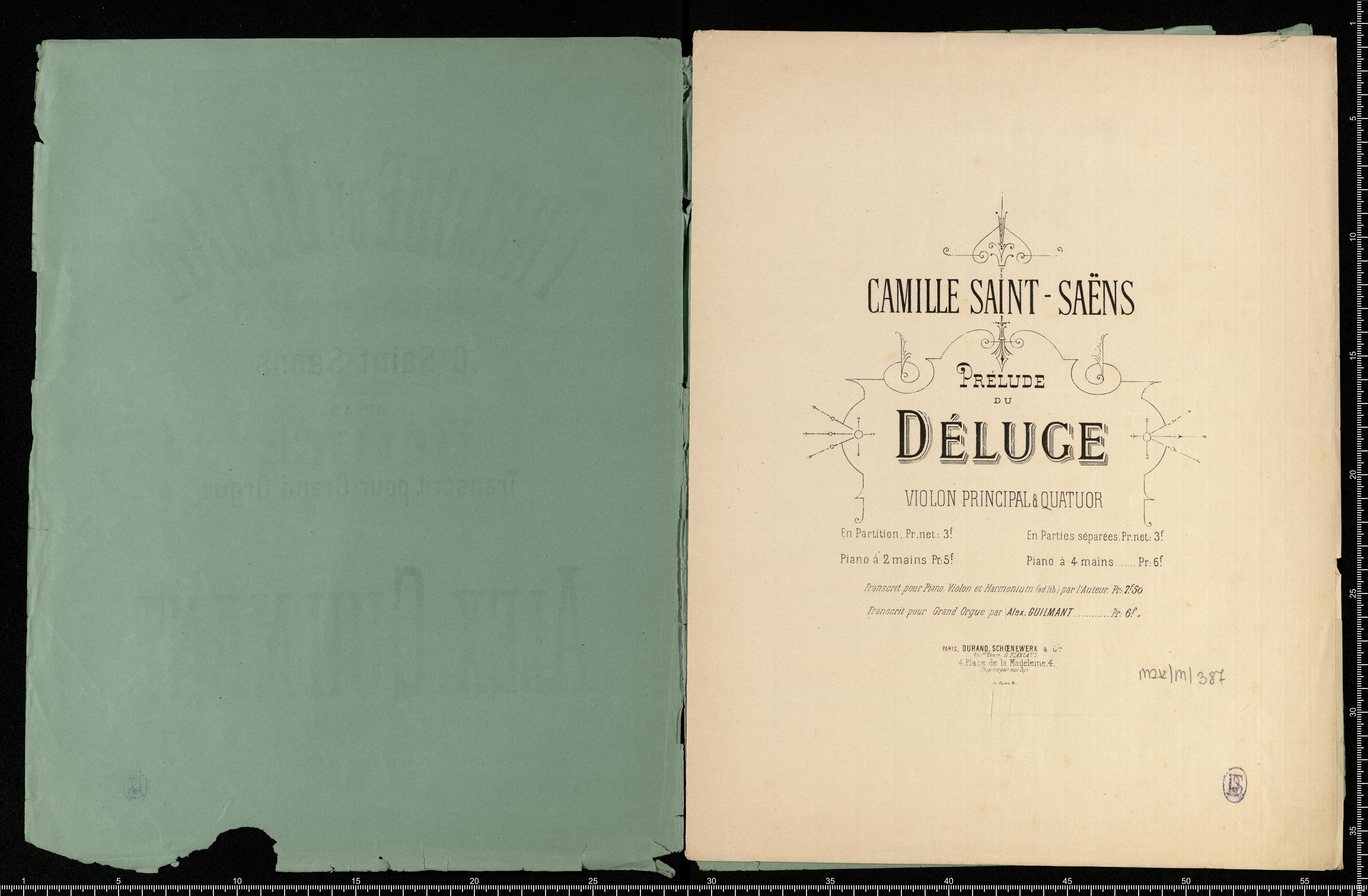 PRÉLUDE du DÉLUGE | DE | C. Saint-Saëns | OP: 45. | Transcrit pour Grand Orgue | PAR | ALEX. GUILMANT | PRIX: 6|f