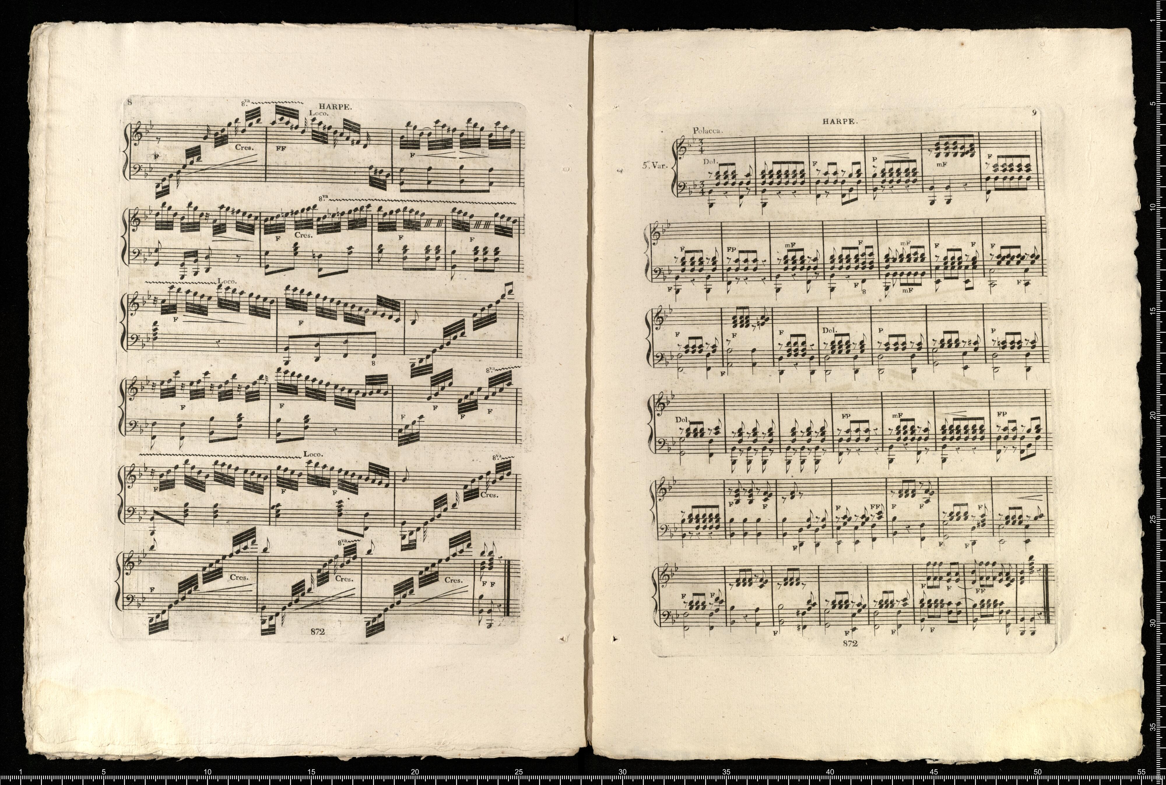 FANTASIE | Sur la Romance Bon Menstrel | Musique de M|r Mereaux. | Mise en Duo avec Variations | pour Harpe et Piano, | Composé et dédiée à Son Altesse Sérénissime | MADEMOISELLE D'ORLÉANS, | PAR | Mademoiselle Campet de Saujon. | Oeuvre 12|e Prix 6|f | A PARIS | Chez M|e|l|t|e|s Erard, Rue du Mail, N|o 13. | Propriété des Editeurs. Dép. à la D|o|n G|l|e de laLib|r|i|e | (872.)