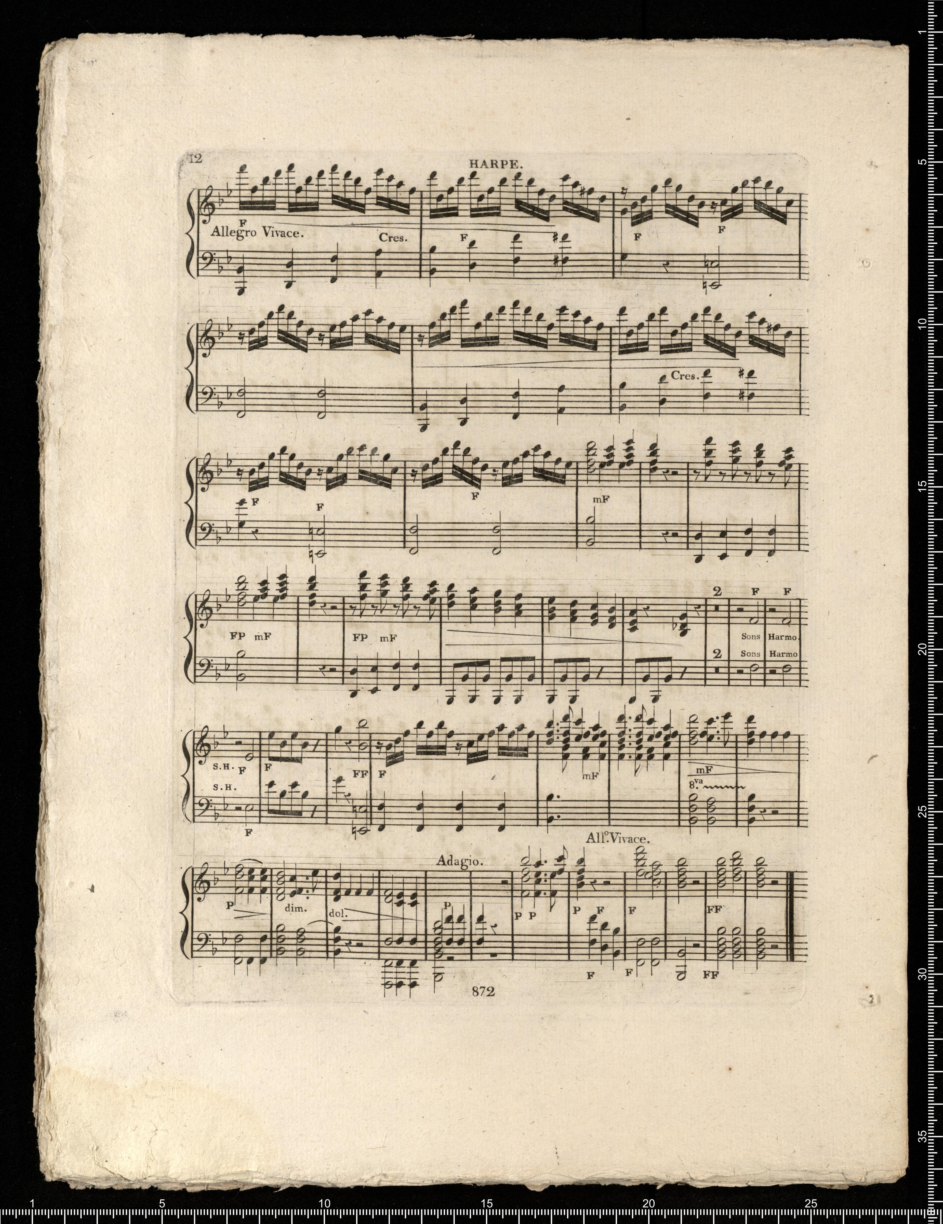 FANTASIE | Sur la Romance Bon Menstrel | Musique de M|r Mereaux. | Mise en Duo avec Variations | pour Harpe et Piano, | Composé et dédiée à Son Altesse Sérénissime | MADEMOISELLE D'ORLÉANS, | PAR | Mademoiselle Campet de Saujon. | Oeuvre 12|e Prix 6|f | A PARIS | Chez M|e|l|t|e|s Erard, Rue du Mail, N|o 13. | Propriété des Editeurs. Dép. à la D|o|n G|l|e de laLib|r|i|e | (872.)