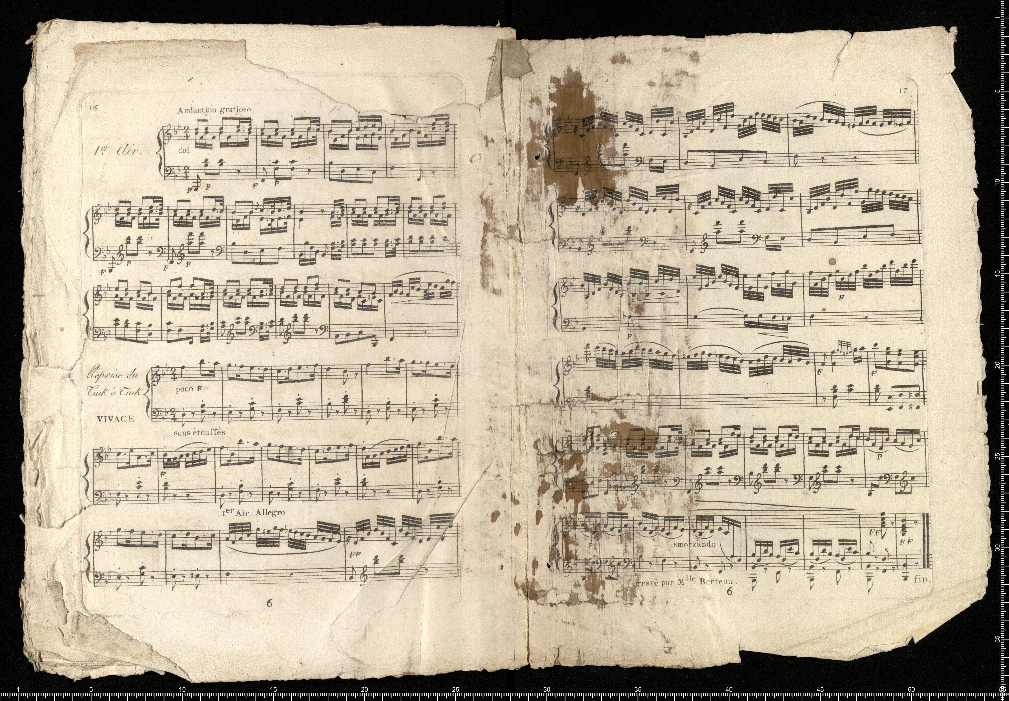 Pot-Pourri | d'Airs Anglais & Ecossais | pour Harpe | Dédié | à Miss Caroline S|t Jules | Par | P. DALVIMARE | Prix 5|H | A PARIS | Chez Berton & Loraux I|e Editeurs de Musique | & M|d|s d'Instruments, rue Feydau, attenant le Théâtre. | à Lion chez Garnier, place de la Comédie N|o 18. | Caraffe _Del Choireau Scrip. Ruotte Scul