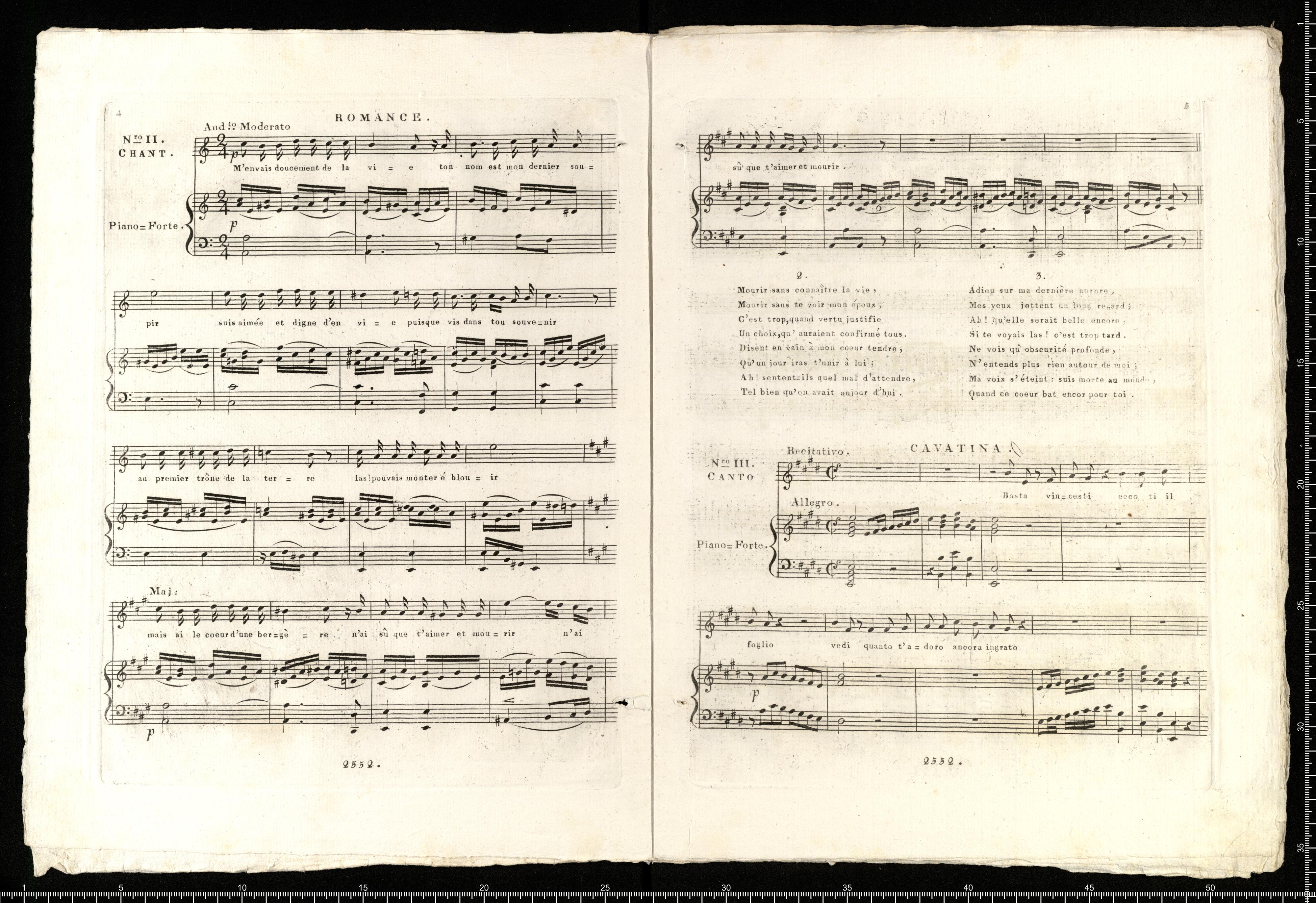 ROMANCES ARIETTES et DUOS | Français et Italiens | avec accompagnement de | Piano=Forté. | Dédiés | A Madame la Comtesse Louise | POTOCKA née OSTROWSKA | MUSIQUE | d'Auguste Panseron, | Pensionaire de S.M. le Roi de France, | Membre de la Société philharmonique de Bologne. | Oeuvre 3. | à Vienne chez Artaria et Comp. | N°. 2552