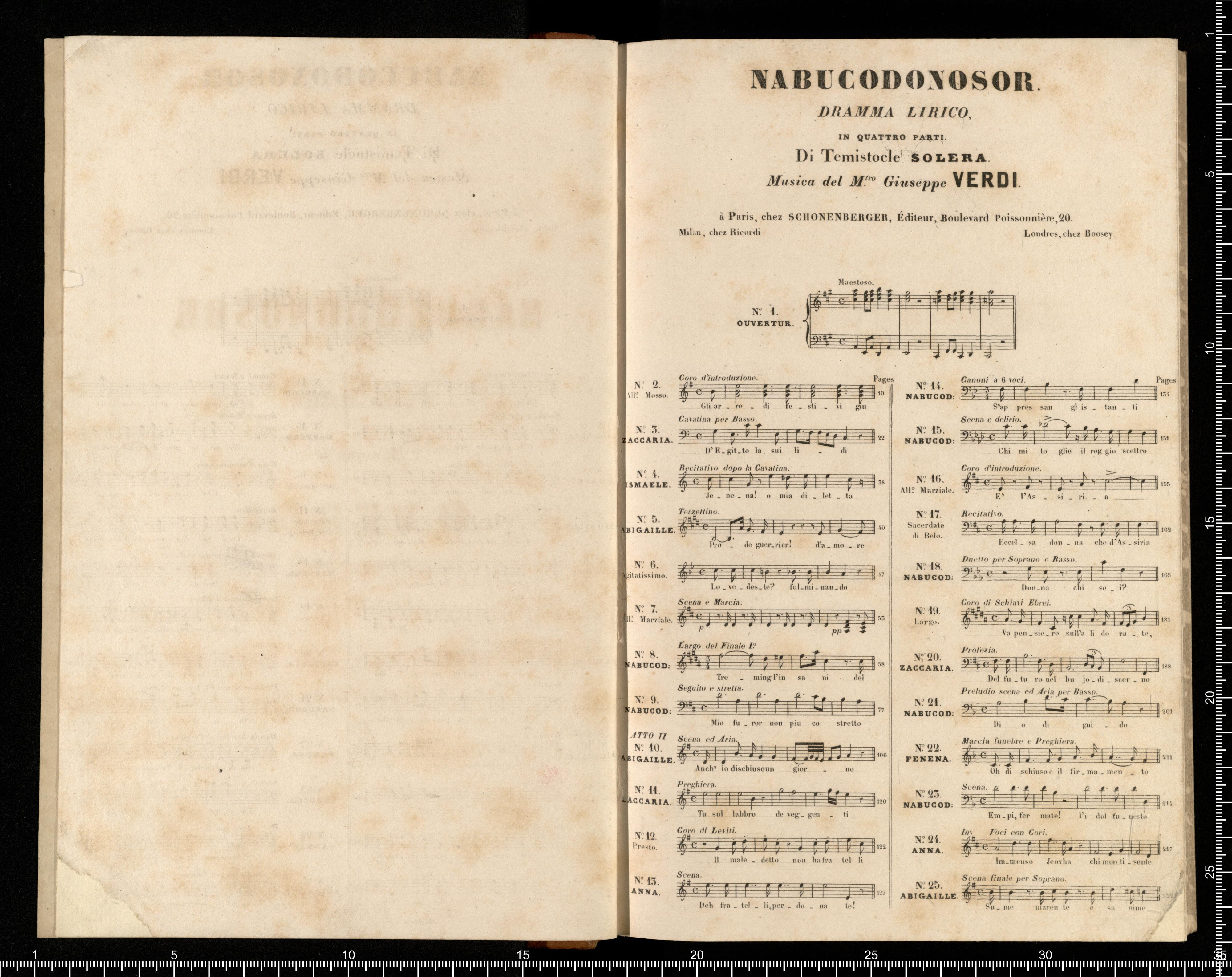 NABUCODONOSOR | Opéra Italien, | Musique de | G. VERDI. | Prix 10|f net. | PARIS, | SCHONENBERGER, | Boulevard Poissonnière, N|o 23. | AV