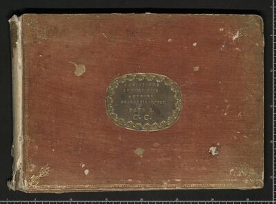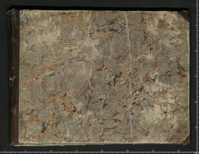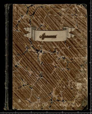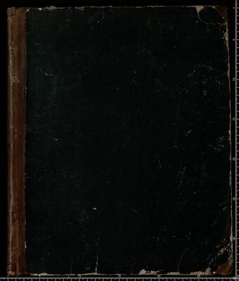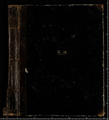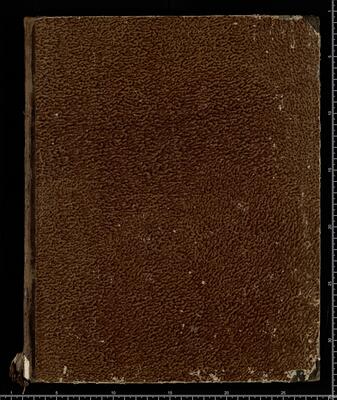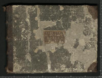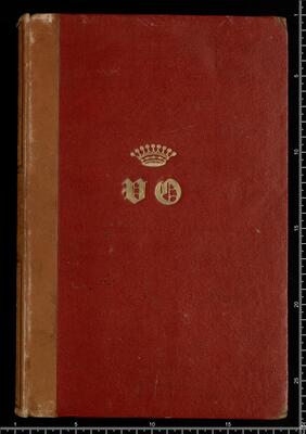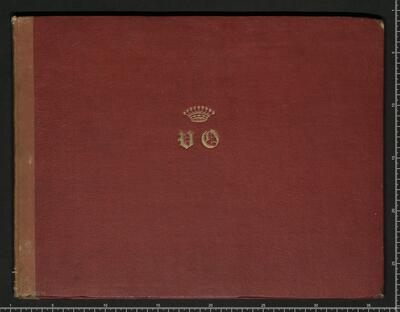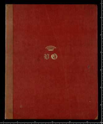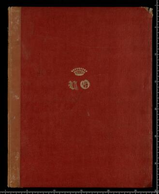 [pl-text: Zatarta pieczęć na dole karty tytułowej, napisy niemożliwe do odczytania, na środku kaligrafowana w stylu copperplate litera R.]
