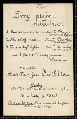 [pl-text: Na karcie tytułowej naklejka z adresem wydawcy.], [pl-text: Brak partii fortepianu.]