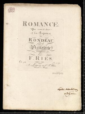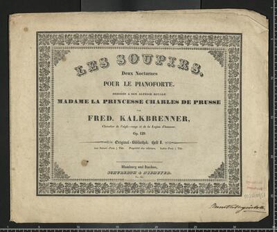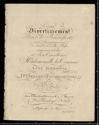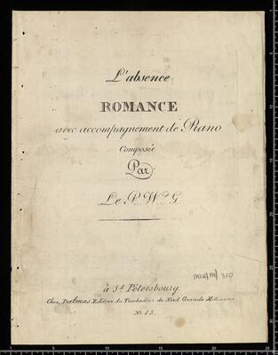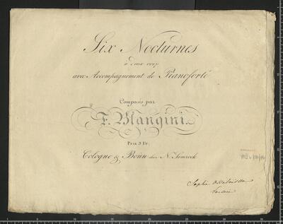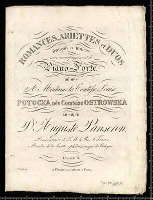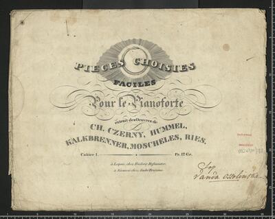On first page handwritten note: "J'ai reçu de ma chère maman toute cette musique à Varsovie. a 9 février 1817." [I recieved all this music from my dear mother on 9th february 1817.], [pl-text: Na pierwszej stronie rękopiśmienna notatka: "J'ai reçu de ma chère maman toute cette musique à Varsovie. a 9 février 1817." ("Otrzymałam całą tę muzykę od mojej drogiej matki w Warszawie dnia 9-ego lutego 1817.").]