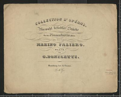 Without recitatives., Second plate number only on pages 5-8., Additional blank cover only with shelfmark