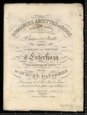 On first page handwritten note: "J'ai reçu de ma chère maman toute cette musique à Varsovie. a 9 fevrier 1817." [I recieved all this music from my dear mother on 9th february 1817.], [pl-text: Na pierwszej stronie rękopiśmienna notatka: "J'ai reçu de ma chère maman toute cette musique à Varsovie. a 9 fevrier 1817." ("Otrzymałam całą tę muzykę od mojej drogiej matki w Warszawie w dniu 9-ego lutego 1817.").]