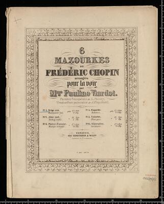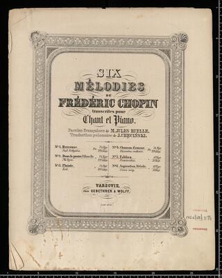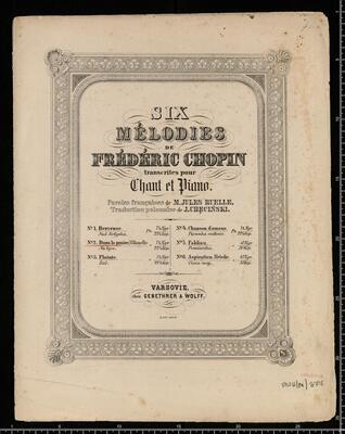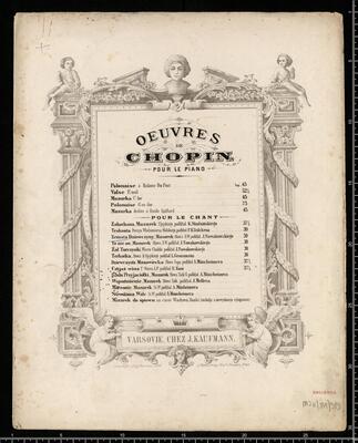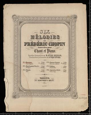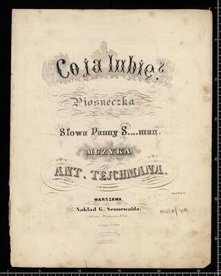 TP lithographed, p. [2] blank, p. 3-7 engraved, p. [8] blank., TP of the series: OEUVRES | DE | CHOPIN. | POUR LE PIANO | [list of works] | POUR LE CHANT | […] | Zemsta Dziewczyny. Mazurek Słowa B.W. podkład J. Nowakowskiego …. Kop. 30 | list of works] | VARSOVIE. CHEZ J. KAUFMANN. | Litografia i Sztycharnia Nut [space] J. Mękarskiego Krak. Przedm. N|o 411, Footline p. 7: Дозволено Цензурою, The source was reinforced with a cardboard cover with the inscription on the first p.: " Zemsta dziewczyny. Mazurek | Głos z fort." [by hand in green flamaster].
