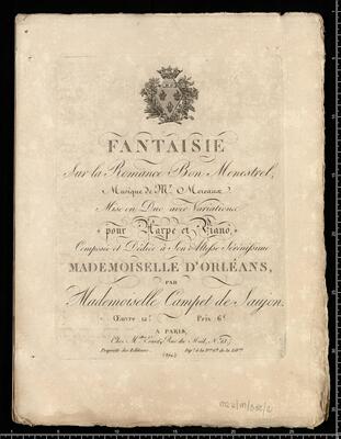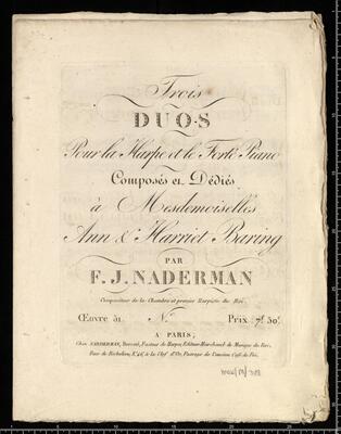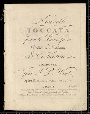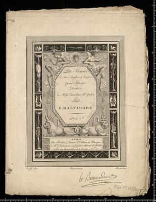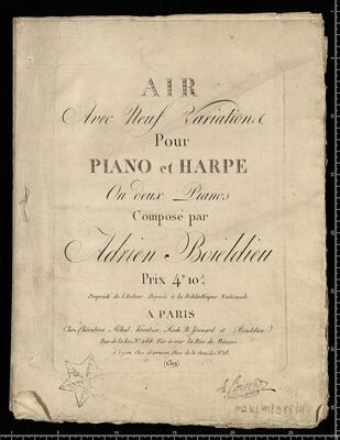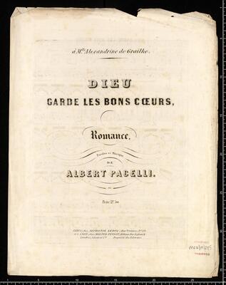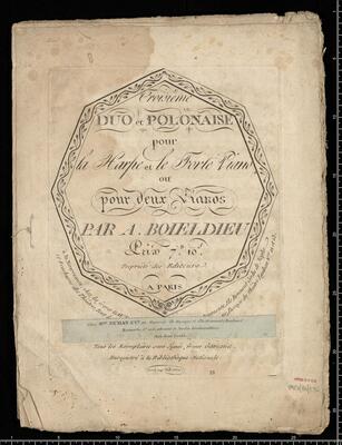[pl-text: Druk jest trochę zniszczony, został czymś zalany.], [pl-text: Podpis na okładce: freres Gaveaux.], [pl-text: Na dole strony tytułowej przyklejono naklejkę z nazwiskiem i adresem nowego wydawcy.]