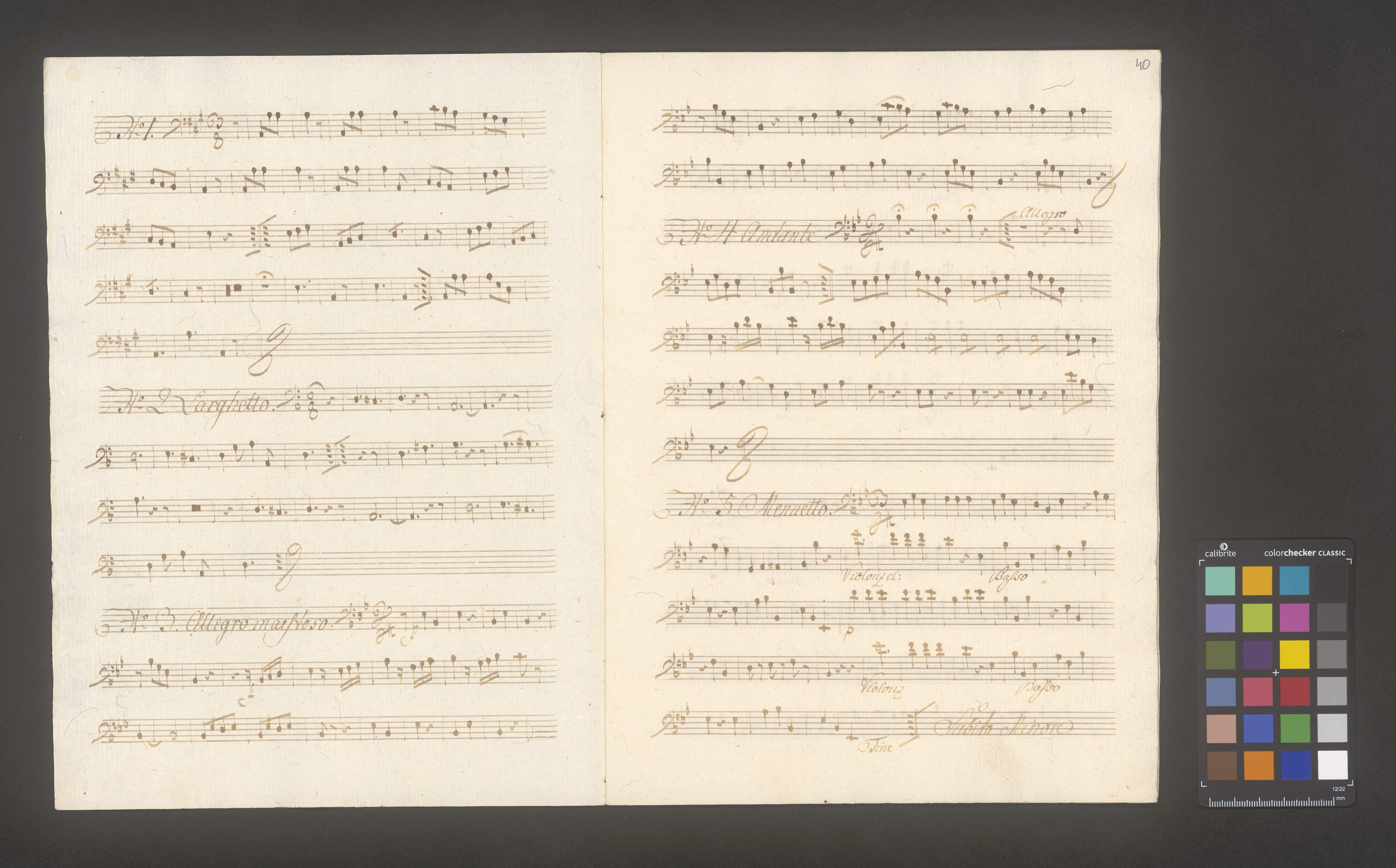 [title page:] La | Pupile Espagnole | per | Due Violini | Viola | Due Oboe | Due Flauti | Clarinetto Solo | Due Corni | Due Fagotti | con | [V]iolone