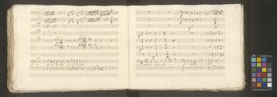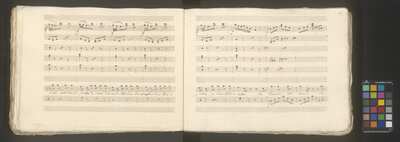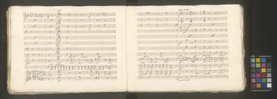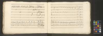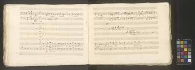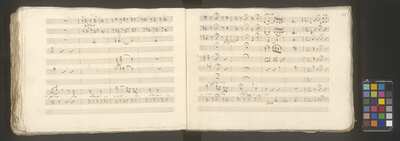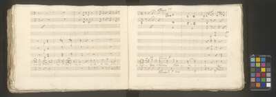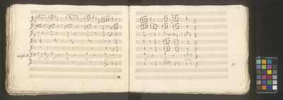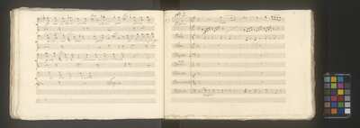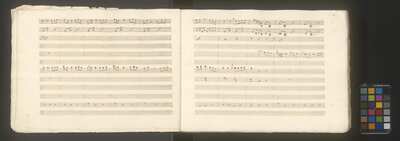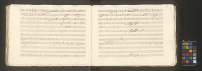 [pl-text: Na każdej stronie ołówkiem zapisano foliacje stron], On all pages numbers of folio in pencil, Przejęto po Potockich 1944, BIBLIOTEKA | MUZEUM w ŁAŃCUCIE | Nr 22.697 Dział Nuty, Owalna pieczęć z herbem Pilawa, koroną otwartą z dziewięcioma pałkami i pięcioma strusimi piórami, pod herbem: „ŁANCUT”