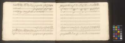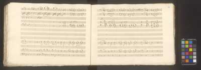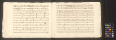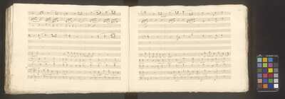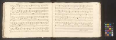 [pl-text: Na każdej stronie ołówkiem zapisano foliacje stron], On all pages numbers of folio in pencil, [pl-text: w źródle czerwoną kredką "D.IV.7 | 22.698."], In the source in red crayon "D.IV.7 | 22.698.", Przejęto po Potockich 1944, BIBLIOTEKA | MUZEUM w ŁAŃCUCIE | Nr 22.698 Dział Nuty, Owalna pieczęć z herbem Pilawa, koroną otwartą z dziewięcioma pałkami i pięcioma strusimi piórami, pod herbem: „ŁANCUT”