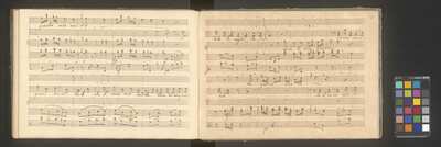 Cover: 2f., The collection consists of manuscripts bound together. Probably written by a copyist. Binding of blue cardboard (22.5 x 31 cm)., In the upper left corner there are fractions (f.eg. 2/5). They means: upper number - number in the act, the lower is the number of acts (2. number in 5th. act of the opera)., Przejęto po Potockich 1944, BIBLIOTEKA | MUZEUM w ŁAŃCUCIE | Nr_ Dział_