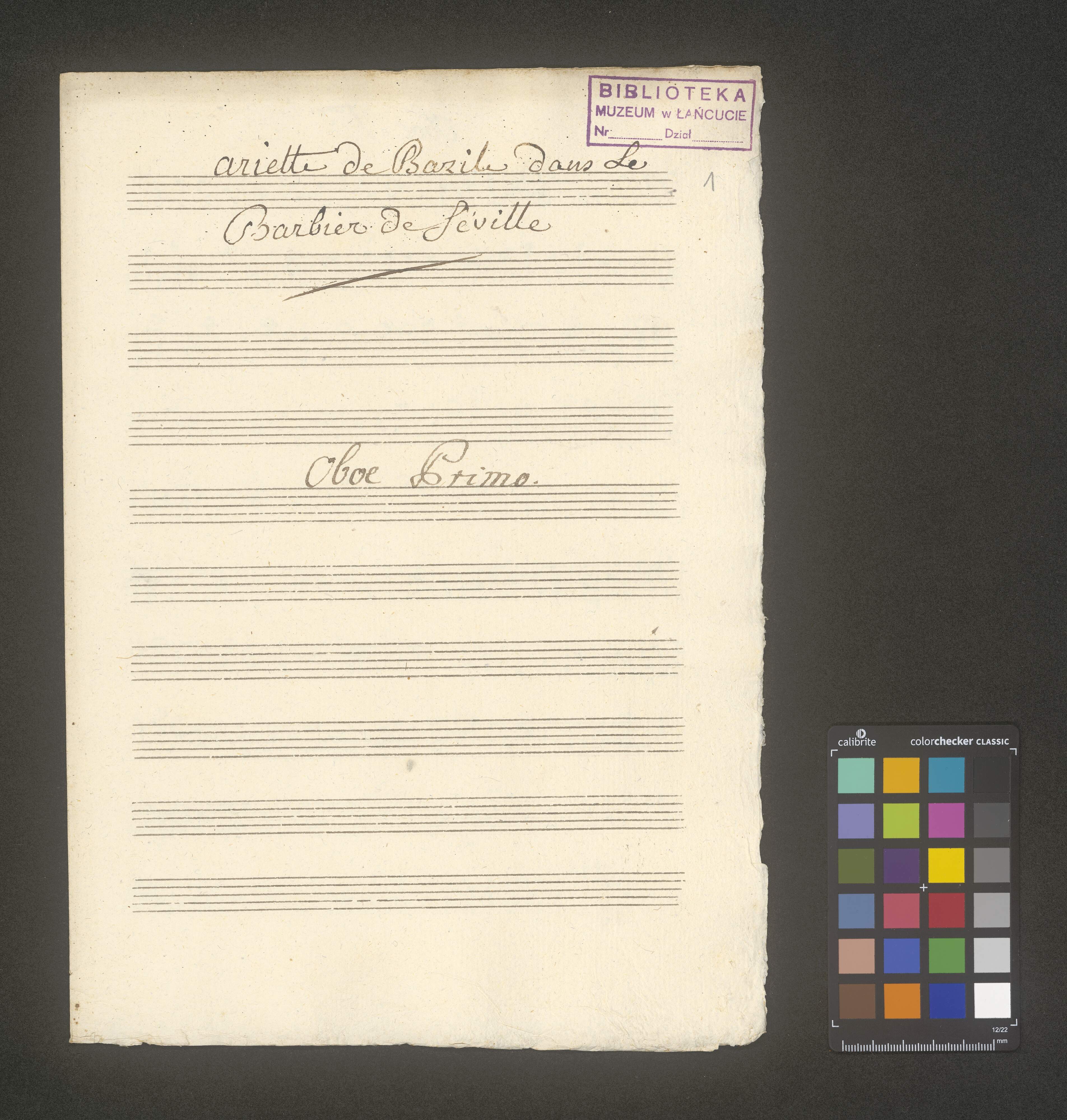 [cover title, score:] Aria | parte D: Basile. [at right, later by other hand:] de basile dans Le Barbier | de Séville