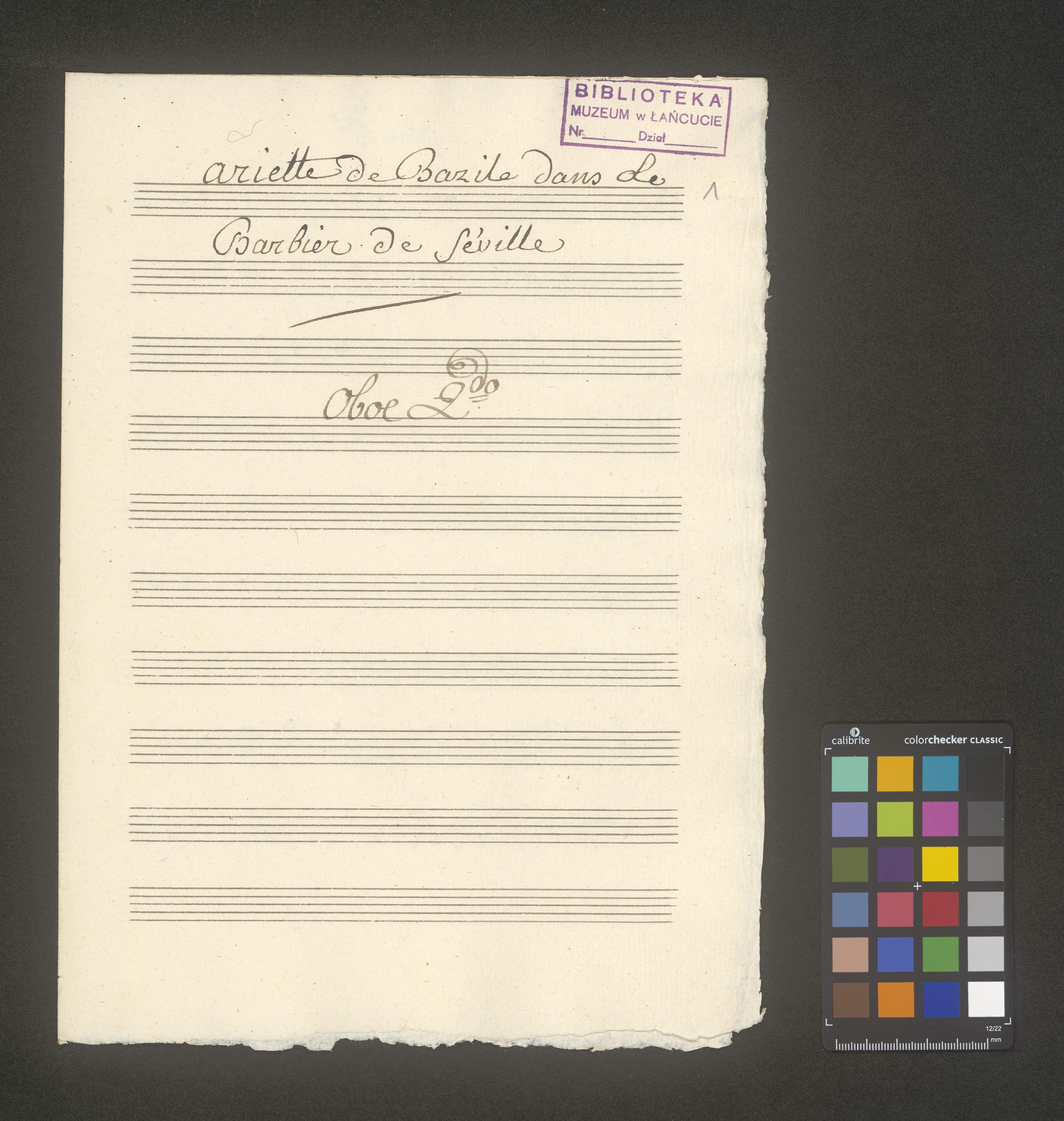 [cover title, score:] Aria | parte D: Basile. [at right, later by other hand:] de basile dans Le Barbier | de Séville