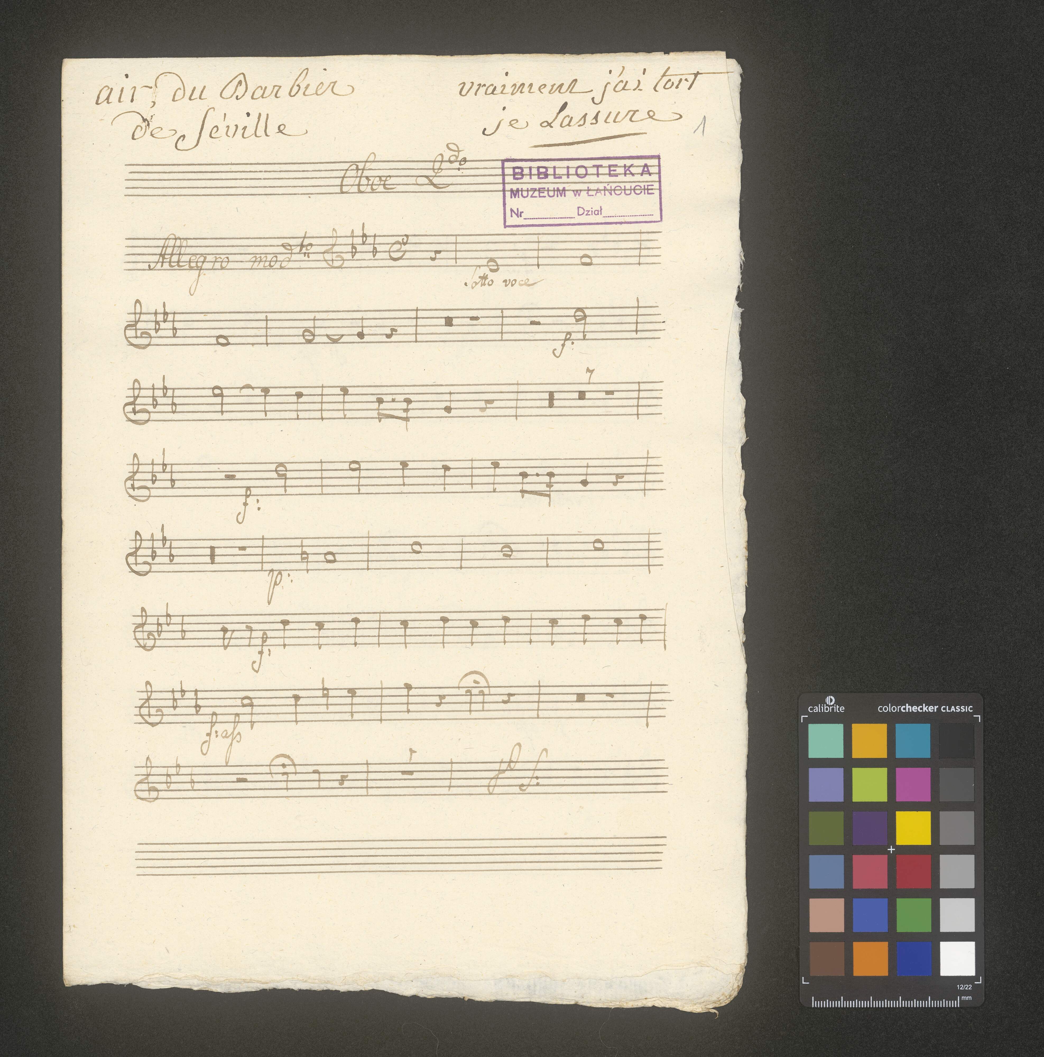 [cover title, vocal score:] Air du Barbier de Séville | /: Vrainmenti 'aitort je l'assure :/ | Chant