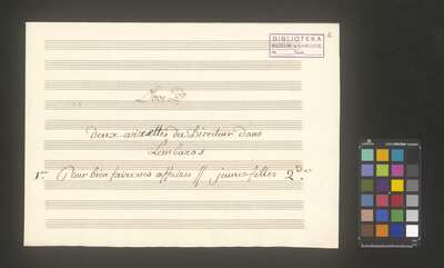 [pl-text: foliacja zapisana ołówkiem w górnym rogu], In the source number of folios in pencil, [pl-text: w źródle zapisano czerwoną kredką "D.II-III | 22.809."], In the source in red crayon "D.II-III | 22.809.", Przejęto po Potockich 1944, BIBLIOTEKA | MUZEUM w ŁAŃCUCIE | Nr 22.809 Dział Nuty