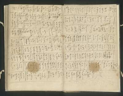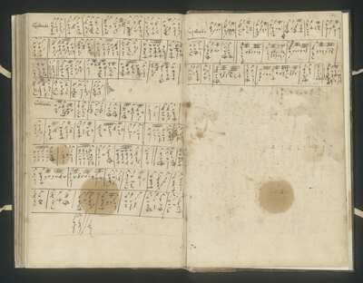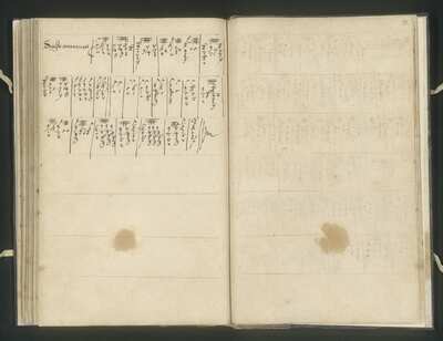 [pl-text: Na wewnętrznej stronie okładki liczne nieczytelne napisy.] On the inside of the cover numerous illegible notes., [pl-text: Na wewnętrznej stronie okładki okrągła fioletowapieczęć: otok: „BIBLIOTEKA UNIWERSYTECKA *”, pole: „W | ŁODZI” i odręczna sygnatura 6983.] Round purple stamp: "BIBLITOTEKA UNIWERSYTECKA * | W | ŁODZI”, handwritten 6983., [pl-text: Na wewnętrznej stronie okładki fioletowa okrągła pieczęć, otok:„* KÖNIGLICHE AKADEMIE D. KÜNSTE * HOCHSCHULE FÜR MUSIK *”, pole: „BERLIN.] On the inside of the cover round stamp: "* KÖNIGLICHE AKADEMIE D. KÜNSTE * HOCHSCHULE FÜR MUSIK * | BERLIN"., [pl-text: Na wewnętrznej stronie okładki odręczna stara sygnatura atramentem 5102.] On the inside of the cover handritten olim shelfmark 5102.