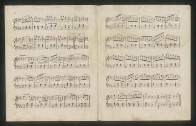 TP, [2] blank, 3-7 [musical text], [8] blank., [pl-text: Strona tytułowa, [2] pusta, 3-7 [tekst muzyczny], [8] pusta]., Round purple stamp: "BIBLIOTEKA UNIWERSYTECKA * | W | ŁODZI”., [pl-text: Okrągła fioletowa pieczęć: otok: „BIBLIOTEKA UNIWERSYTECKA *”, pole: „W | ŁODZI”]., Purple stamp on the last page: „TYLKO NA MIEJSCU”., [pl-text: Fioletowa pieczęć na ostatniej stronie: ,,TYLKO NA MIEJSCU”].