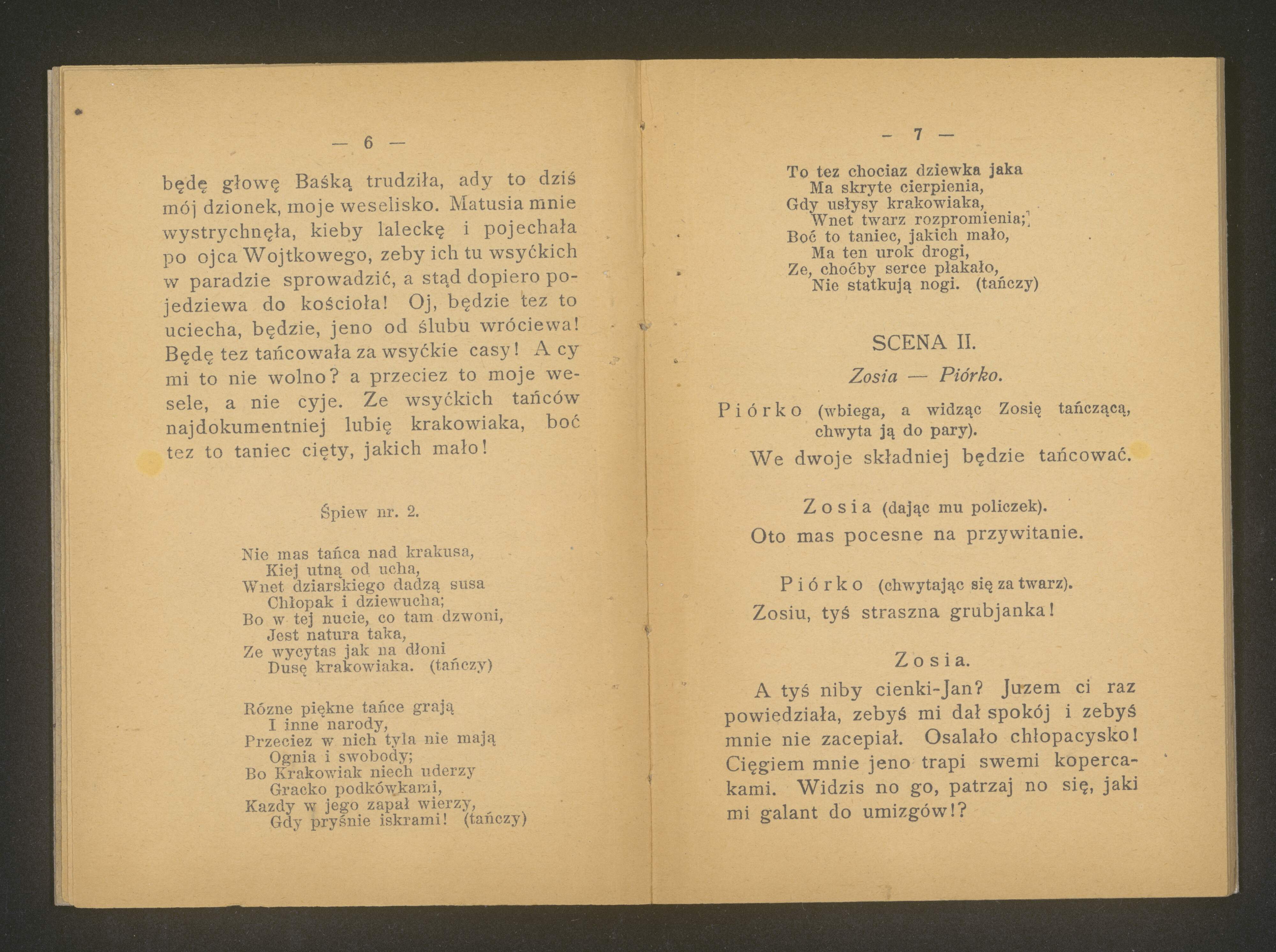 [title page:] 26 NARÓD SOBIE! 26 | Wesele na Prądniku | Obrazek ludowy | w 2 odsłonach ze śpiewami i tańcami | napisany przez Al. Ładnowskiego | Muzyka Adama Wrońskiego. | Wydanie trzecie. | Nakładem Księgarni A. Cybulskiego w Poznaniu. | Czcionkami Drukarni Mieszczańskiej T. A. w Poznaniu. | 1926
