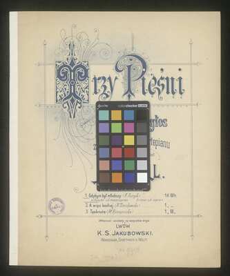 Structure of the print: title page; p. 2-7: score; p [8]: an advertisement presenting other compositions published by K. S. Jakubowski's publishing enterprise., [pl-text: Strona tytułowa, 2-7 partytura, [8] reklama innych kompozycji opublikowanych przez wydawnictwo K. S. Jakubowski]., [pl-text: Fioletowa pieczęć na stronie tytułowej: "BIBLIOTEKA | Warszawskiego | Tow. Muzycz. | Nr"]., Purple stamp on the title page: "BIBLIOTEKA | Warszawskiego | Tow. Muzycz. | Nr"., [pl-text: Na stronie [2] pieczątka: "BIBLIOTEKA | Warszawskiego | Tow. Muzycz. | Nr _" oraz obok dopisek ołówkiem: "A.29.588/76"]., Stamp on p. [2]: "BIBLIOTEKA | Warszawskiego | Tow. Muzycz. | Nr _" oraz obok dopisek ołówkiem: "A.29.588/76"., [pl-text: wewnątrz notatki wprowadzone ołówkiem], Inside handwritten notes with pencil, [pl-text: na karcie tytułowej i s. 2. pieczątki „BIBLIOTEKA UNIWERSYTECKA * | W | ŁODZI”. Poniżej sygnatura „M 16607”.], On the title page and on p. 2 stamps "BIBLIOTEKA UNIWERSYTECKA * | W | ŁODZI". Signature below "M 16607"., KD | 7542 51041808