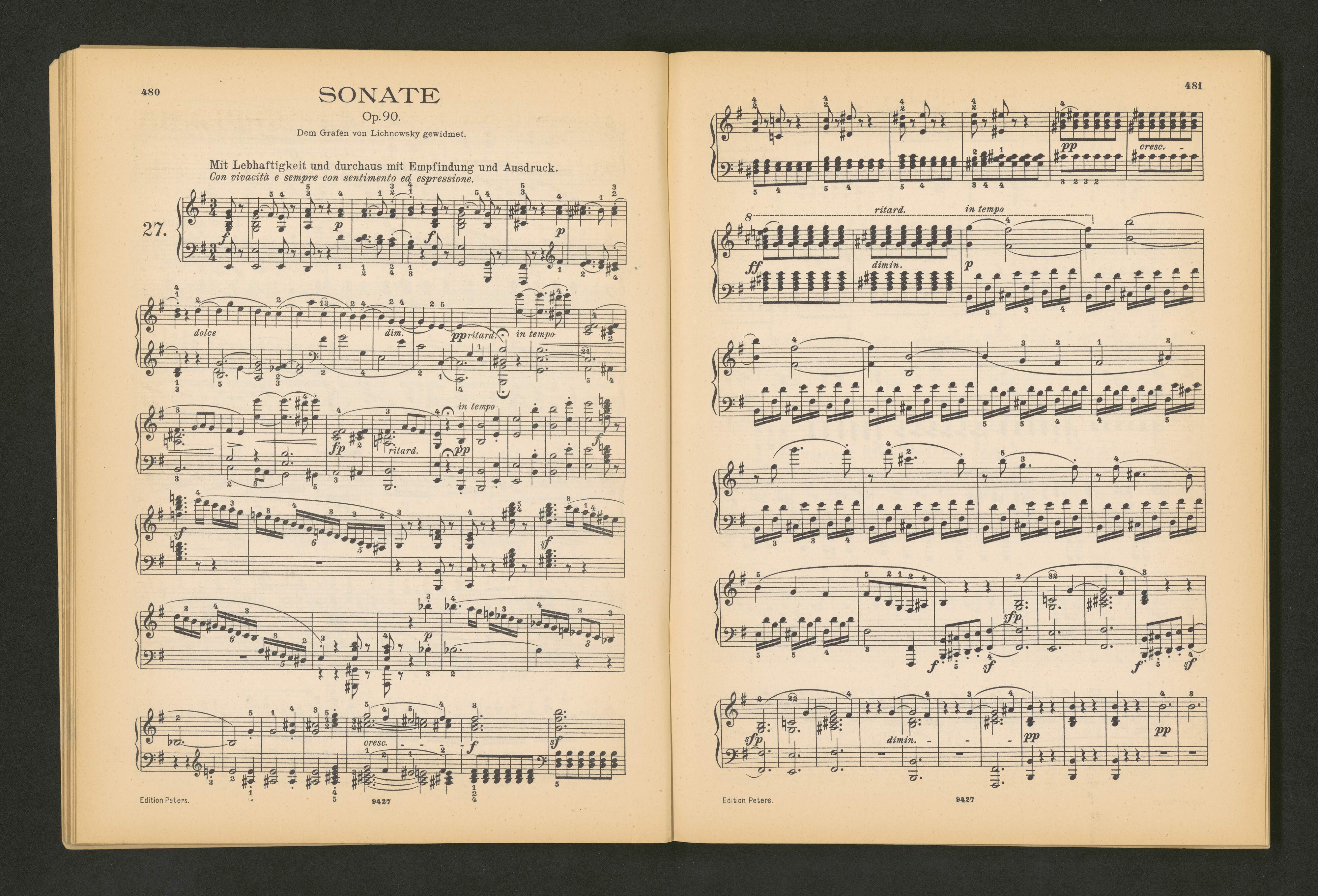 Sonaten | für | Pianoforte solo | von | L. VAN BEETHOVEN | herasgegeben | von | LOIUS KÖHLER | und | ADOLF RUTHARDT. | Neu revidierte Ausgabe. | LEIPZIG | C.F. PETERS. | 9427