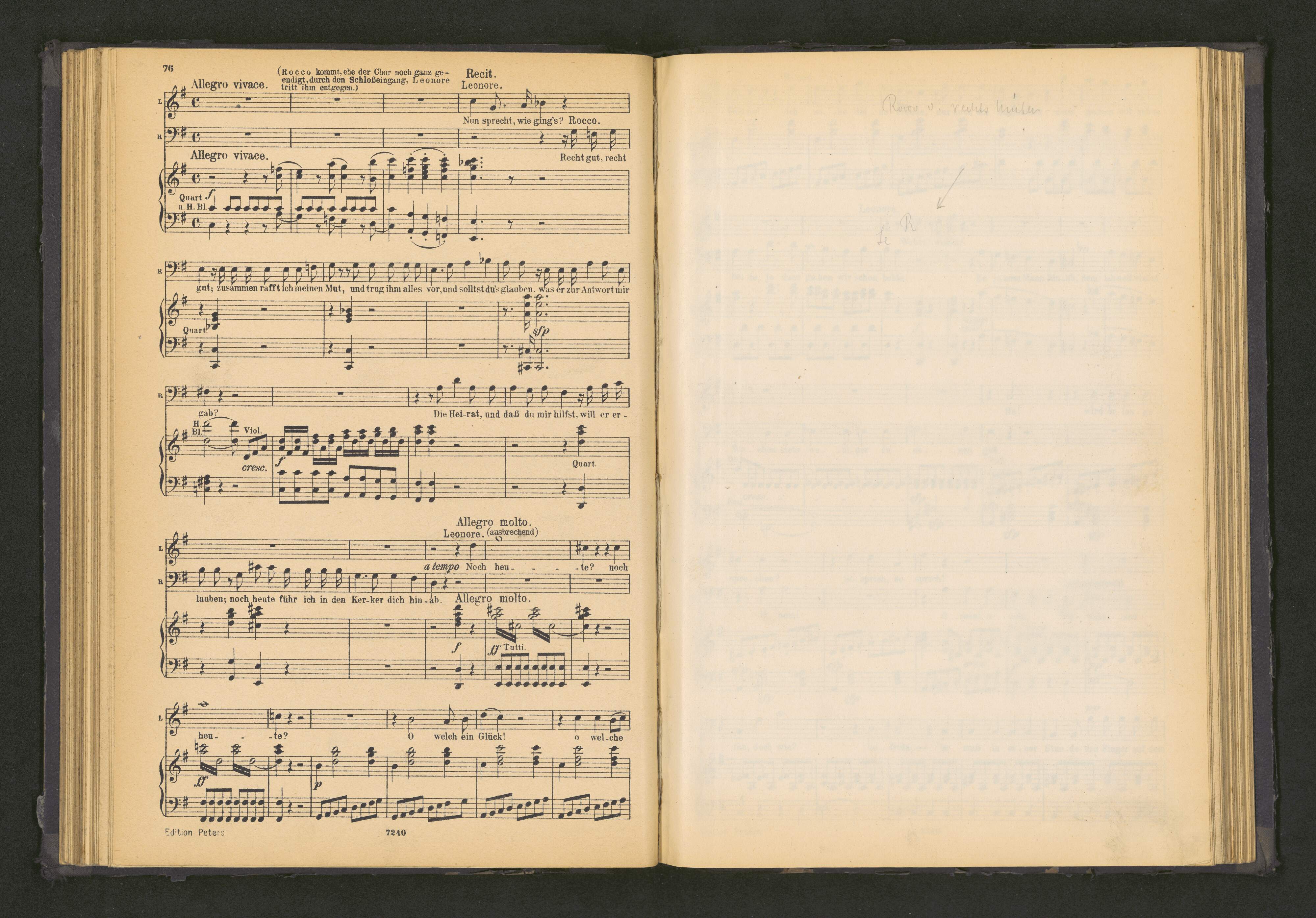 [title page:] FIDELIO | Oper in 2 Akten | von | L. van Beethoven | Klavierauszug | neu revidiet von | GUSTAV F. KOGEL. | 7240. | LEIPZIG | C. F. PETERS
