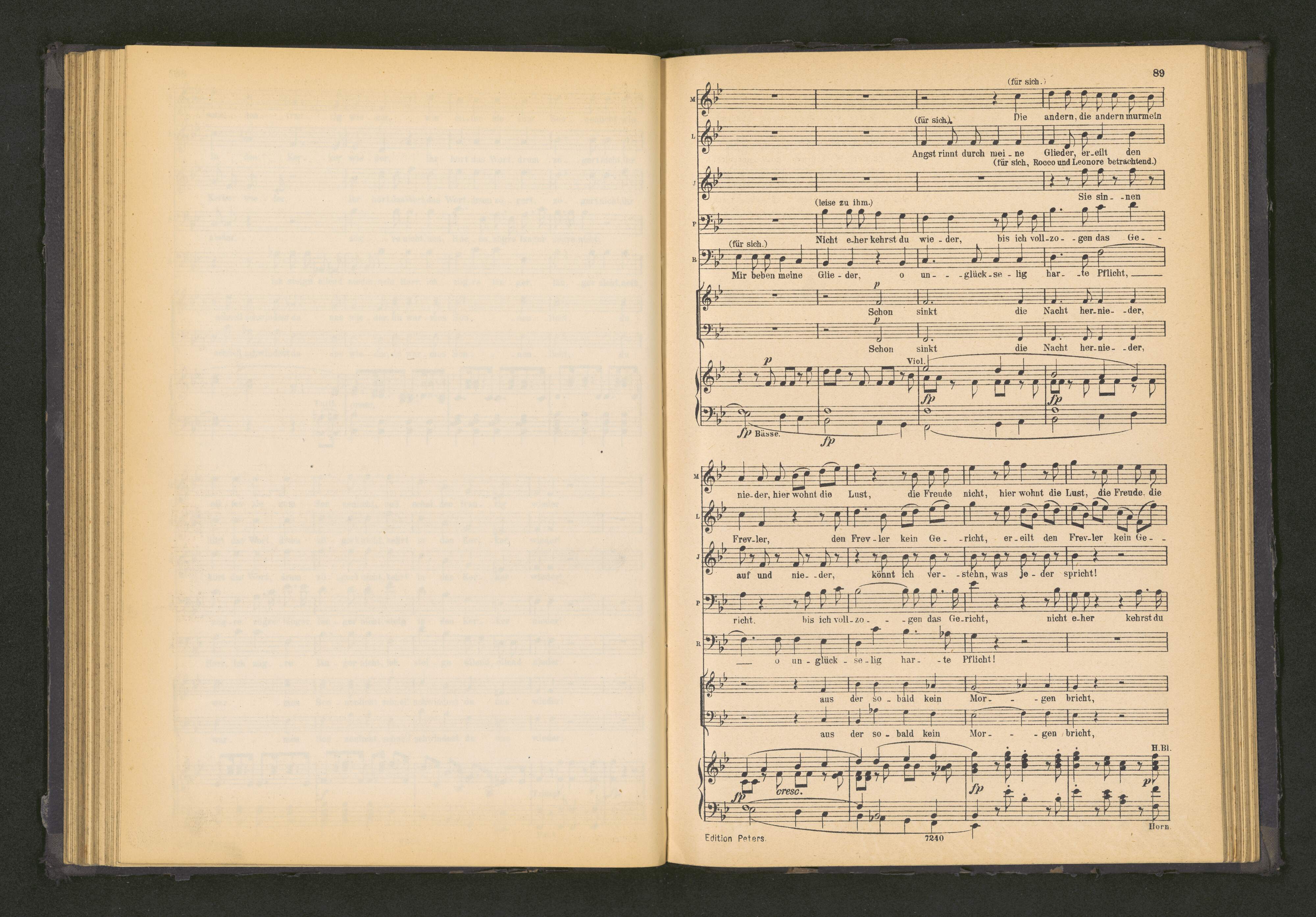[title page:] FIDELIO | Oper in 2 Akten | von | L. van Beethoven | Klavierauszug | neu revidiet von | GUSTAV F. KOGEL. | 7240. | LEIPZIG | C. F. PETERS