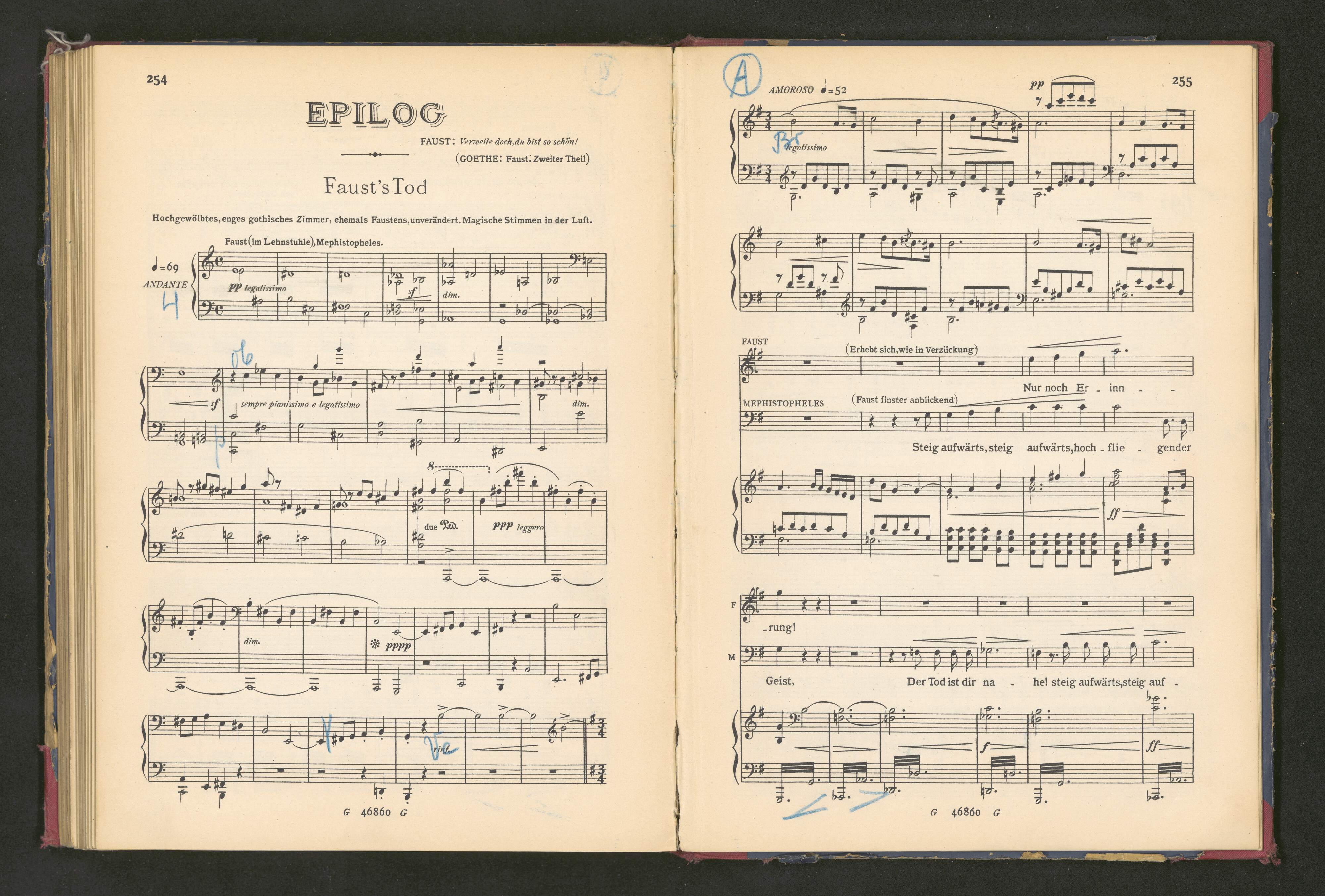 [title page:] MEPHISTOPHELES | OPER IN VIER ACTEN MIT PROLOG UND EPILOG | VON | ARRIGO BOITO. | Zu der für Deutschland bestimmten Bearbeitung sind die mit << >> bezeichneten Goethe'schen Verse | vom Verfasser selbst verwendet worden. Das Uebrige ist übersetzt von C. NIESE. | VOLLSTÆNDIGER CLAVIER-AUSZUG | MIT DEUTSCHEM TEXT. | Preis: (A) nett Fr. 16 - Mk. 12 - | Eigentragen germäss den internationalen Vertägen. - Eigenthum für alle Länder. | Alle Rechte der Auflührung, Reproduction, Ausführung, Uebersetzung und Bearbeitung sind vorbehalten | G. RICORDI & C. | MUSIK-VERLAG | 4/6, Querstrasse - L E I P Z I G - Querstrasse, 4/6 | MAILAND, ROM - NEAPEL - PALERMO - PARIS - LONDON - BUENOS-AIRES - NEW-YORK | (PRINTED IN ITALY)