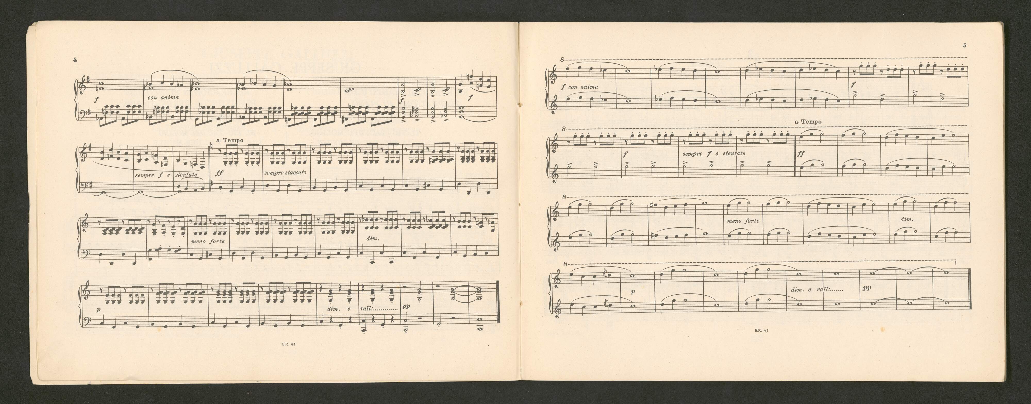 E. R. 41 | GALLUZZI | RICREAZIONI PIANISTICHE | QUATTORDICI PICCOLI PEZZI MELODICI | PER PIANOFORTE | A QUATTRO MANI | NELL'ESTENSIONE DI CINQUE NOTE | PRIMA SERIE | TESTO ITALIANO | TEXTO ESPAGNOL | TEXTE FRANCAIS | DEUTSCHE TEXT | G. RICORDI & C. | MILANO | RIMA - NAPOLI - PALERMO | LEIPZIG - BUENOS AIRES - S. PAULO | PARIS: SOC. ANON. DES ÉDITIONS RICORDI | LONDON: G. RICORDI & Co. (LLONDON) LTD. | NEW YORK: G. RICORDI & Co., INC. | (COPYRIGHT MCMXVIII, BY G. RICORDI & CO.)