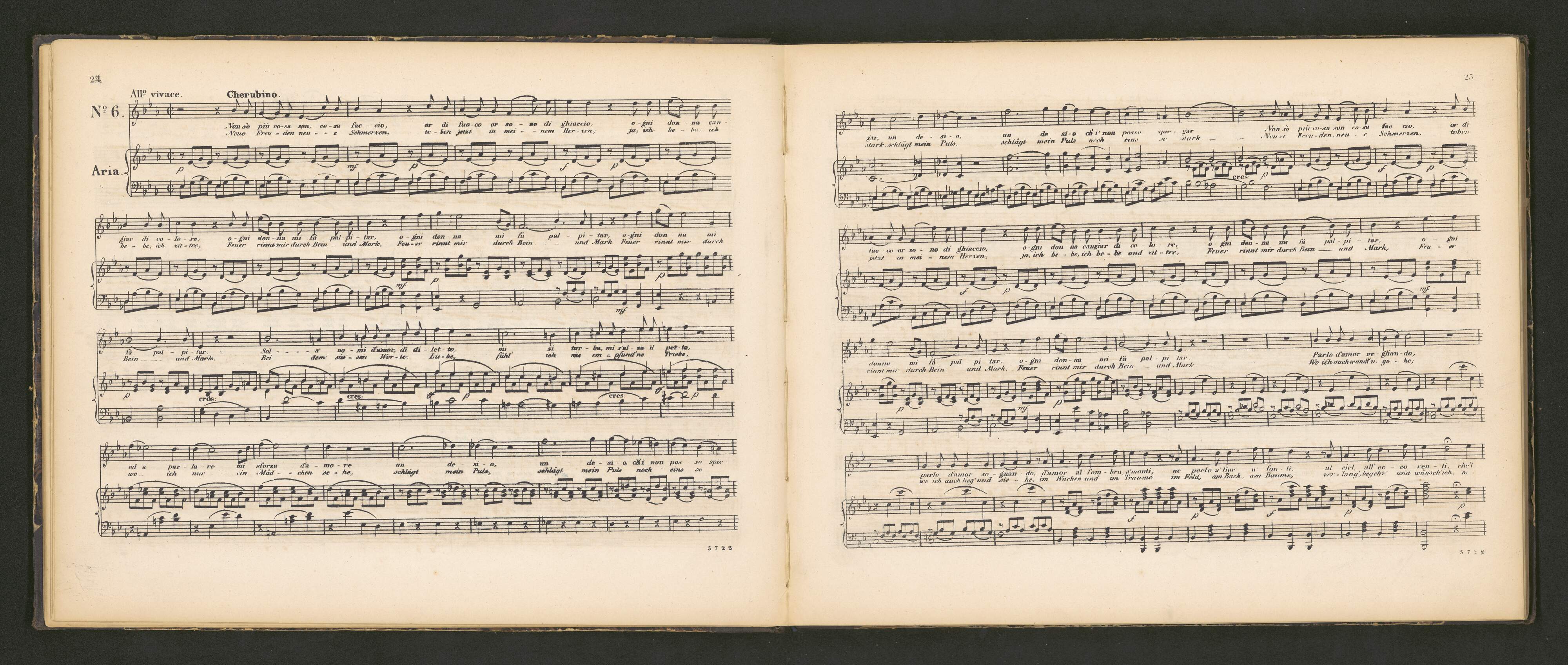 LE NOZZE DI FIGARO | Opera buffa | posto in musica da | W. A. Mozart | Ridotto per il Pianoforte | FIGARO'S HOCHZEIT | Oper von | W. A. Mozart. | Neuer vollstandiger Klavier-Auszug | von | JULIUS ANDRÉ. | N|o 5722. Italienischer und deutscher Text. Preis | Offenbach |a/m, bei Johann André