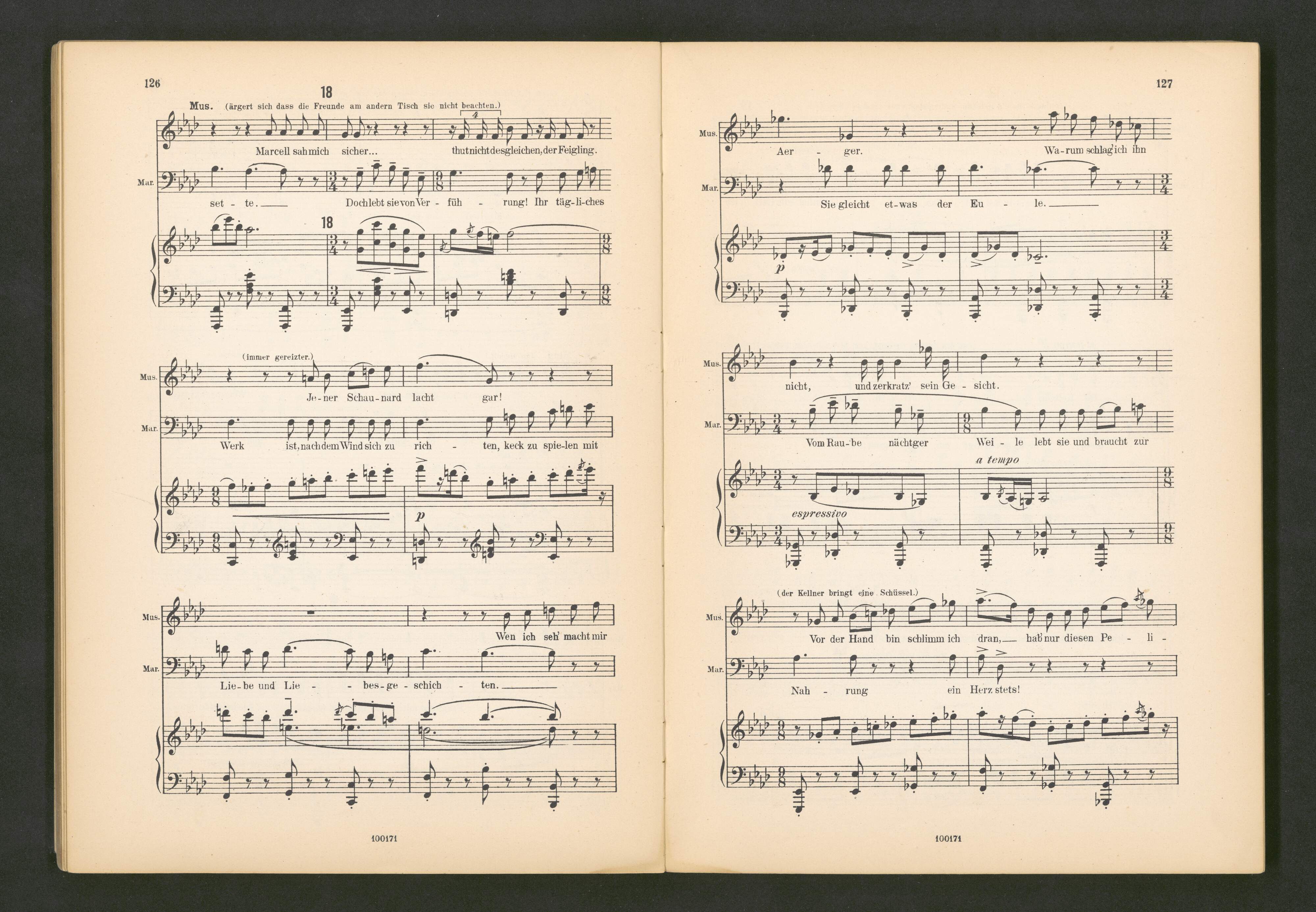 Die | Bohème | Scenen aus HENRY MURGERS "Vie de Boeme" | in vier Bildern | Musik| von | G. PUCCINI | [left:] Vlavierauszug mit Text: Mk. 12. | Pianoforte allein ,, 6. [right:] Eigenthum der firma | G. RICORDI & C. | fur alle Lander. | G. RICORDI & CO. | Musik-Verlag | Questr-16. | LEIPZIG | MAILAND-ROM-NEAPEL-PALERMO-PARIS-LONDON-BUENOS-AIRES | (Copyright 1897, by G. Ricordi & Co.) | (Printed in Italy)