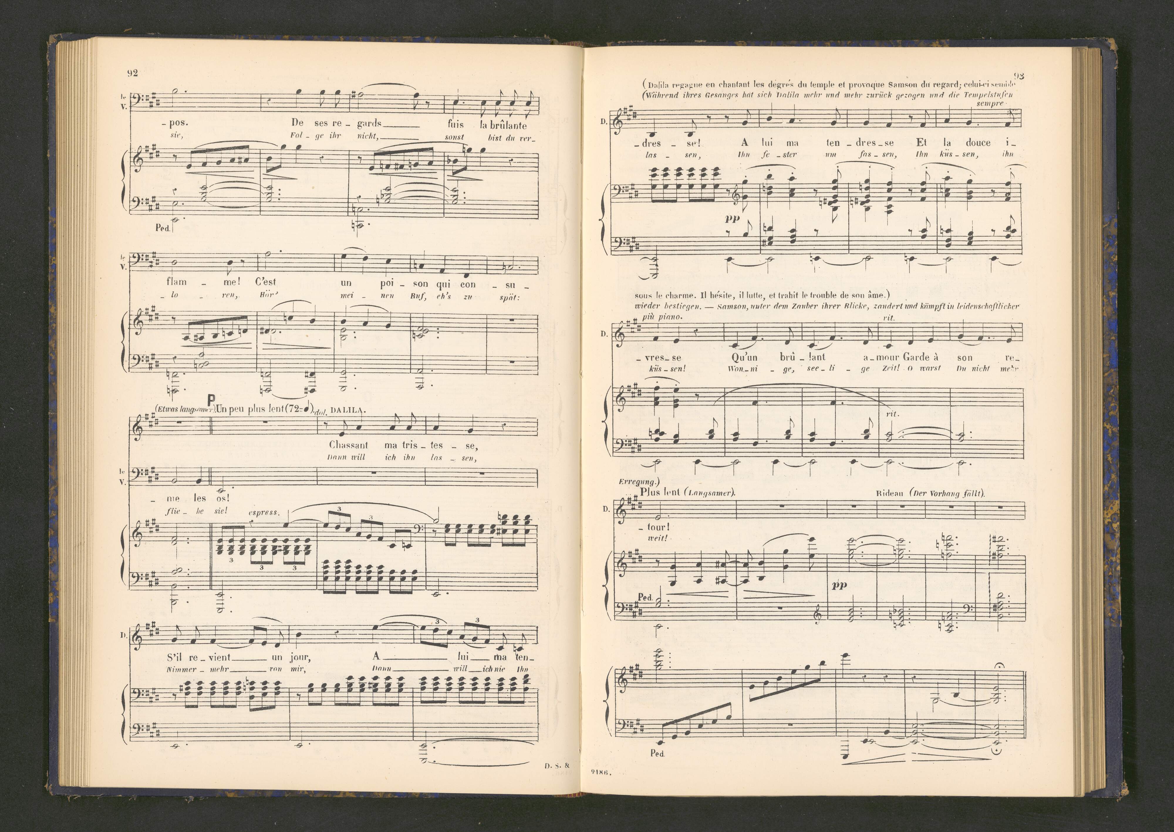 SAMSON | ET | DALIA | Opera en 3 Actes | de | FERDINAND LEMAIRE | avec Traduction allemande par | RICHARD POHL | Musique de | CAMILLE SAINT-SAËNS | Paris, DURAND & SCHŒNEWERK, Editeurs, | 4, Place de la Madeleine. | Depose selon les traites internationaux. Propriete pour tous pays. | Tous droits d'audition, de representation, de traduction et d'arrangements reserves