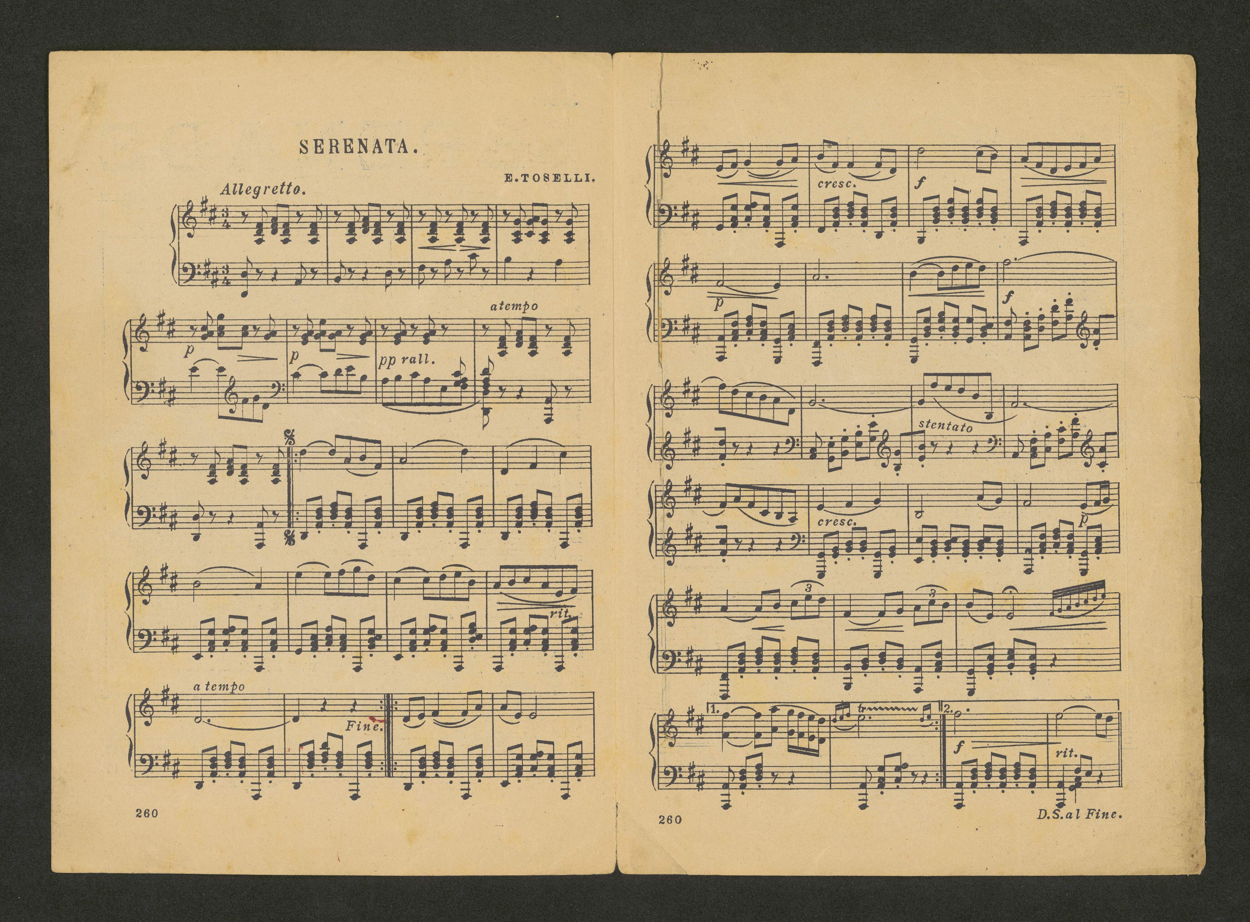 [title page:] N|o 260. | SERENADE | muz. E. TOSSELLI. | [list of compositions] | W. Dobosz Markowska. | Nakład F. GRĄBCZEWSKIEGO i I. RZEPECKIEGO. | Skład główny: I. Rzepecki, Warszawa, Krak. Przedmieście N|o 11