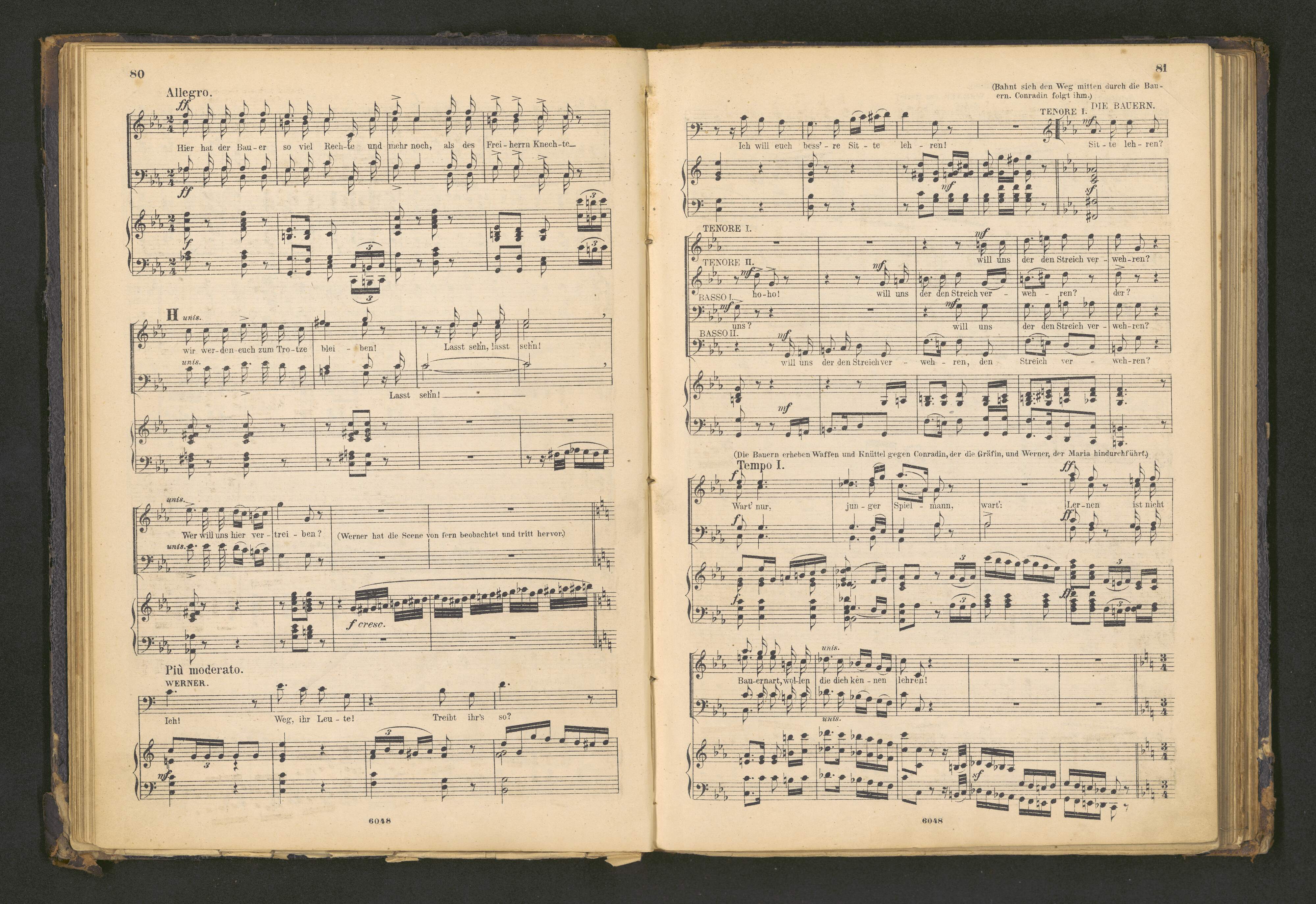 Der | Trompeter von Säkkingen | (The Trumpeter of Sackingen) | Oper in 3 Akten, nebst einem Vorspiel. | Mit autorisirtet theilweiser Benutzung der Jdee und einger Originallieder | aus | J. Victor von Scheffets Dichtung | von RUDOLF BUNGE. | Musik | von | Victor E. Nessler. | Eigenthum der Verleger. | J. Schuberth & C|o Leipzig. | New York Wm. A. Pond & C|o N|o 25 Union Square. | Copyright 1884 by Wm. A. Pond & C|o | All right reserved. | Entered Stationers Hall. London. | Lith. Anst. v. F. W. Garbrecht's Nachf. Oscar Brandstetter, Leipzig