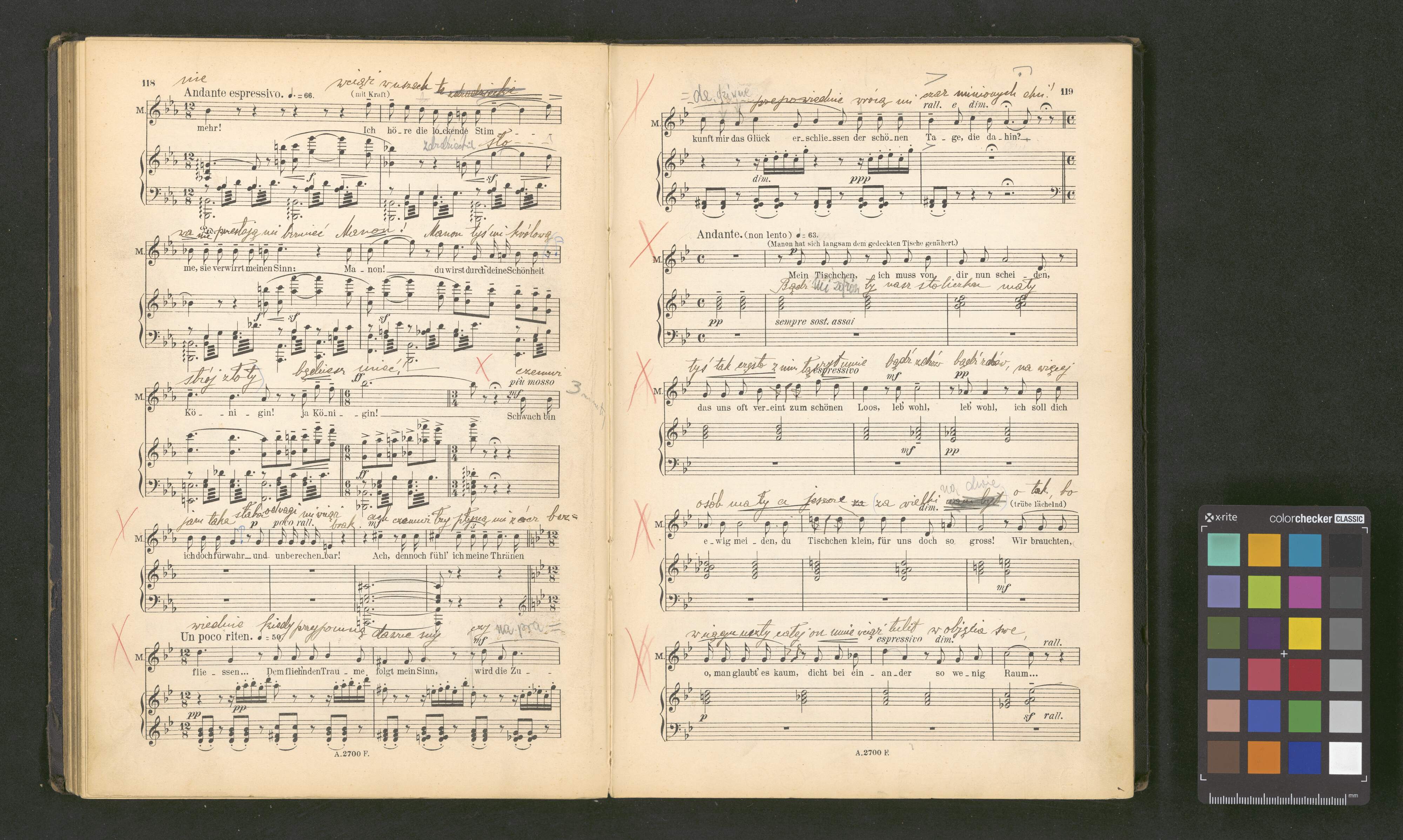 MANON. | OPER | in 4 Akten und 6 Bildern | Text von | HENRI MEILHAC & PHILIPP GILLE | Musik von | J. MASSENET. | Deutsch von FERDINAND GUMBERT. | [pricing index for particular issues] | Eigenthum des Verlegers | BERLIN, | ADOLPH FÜRSTNER | (.C.F. Meser) Königl. Sachsische Hof-Musikhandlung | PARIS, HEUGEL & C|i|e | Eigenthumer fur alle Lander ausser Deutschland und der oestrung Monarche | Alle Rechte vorbehalten | Das Vorrecht der Herausgabe im Altgemeinen und fur bestimmte Instrumente oder Orchester | ist fur die k. k. oestr. Staaten nach dem Patent de dto 16 Febr. 1846 vorbehalten | In Frankreich verbotene Ausgabe. | Lith. Anst. v. C. G. Röder, Leipzig