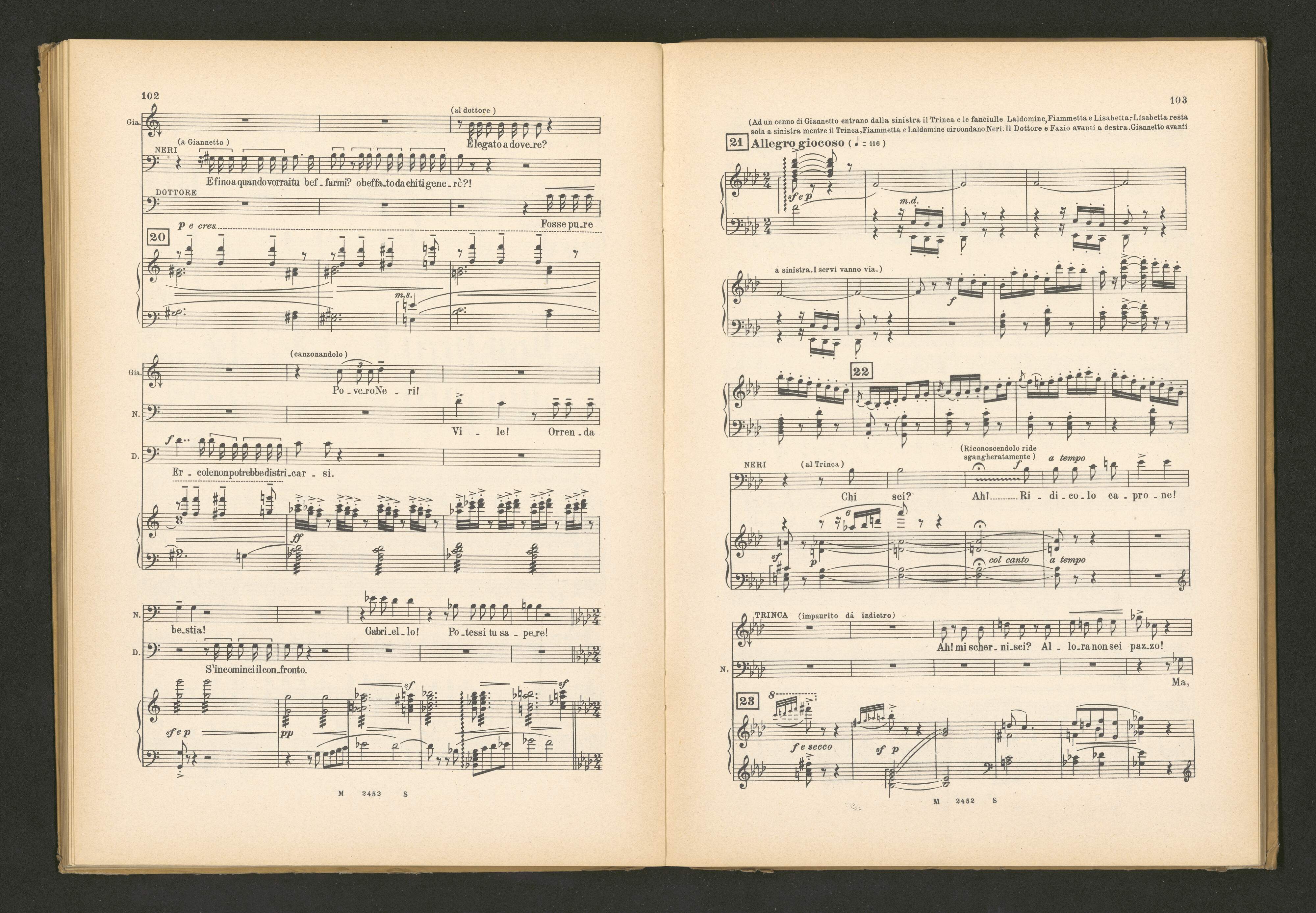 VMBERTO. GIORDANO. | LA.CENA.DELLE.BEFFE. | .POEMA .DRAMMATICO. | .IN.QVATTRO.ATTI. | .DI.SEM.BENELLI. | .RIDVZIONE.PER.CANTO.E.PIANOFORTE. | .DI.RAFFAELE.DELLI.PONTI. | .MILANO. | .SONZOGNO. MCMXXIV
