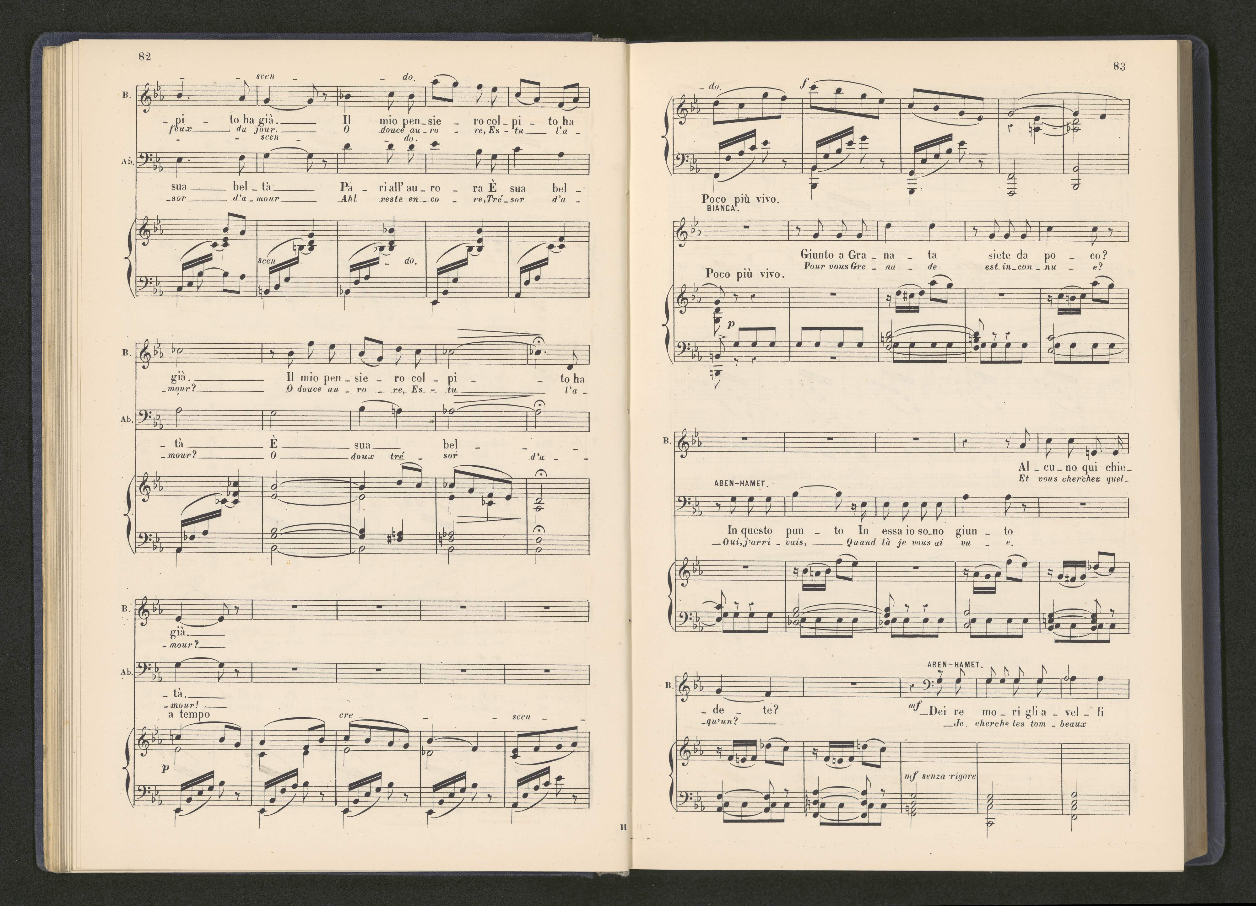 THÉÂTRE-ITALIEN DE PARIS | ABEN-HAMET | Opéra en quatre Acts et un Prologue | DE MM. | LÉONCE DÉTROYAT ET A. DE LAUZIERES Musique de | PARTITION ITALIENNE | POUR CHANT ET PIANO | Prix net : 20 Francs | 1884 | PARIS | AU MÉNESTREL, 2 bis, rue Vivienne, HENRI HEUGEL | ÉDITEUR-PROPRIÉTAIRE POUR TOUS PAUS | Droits de reproduction, de tradiction et de représentation réservés