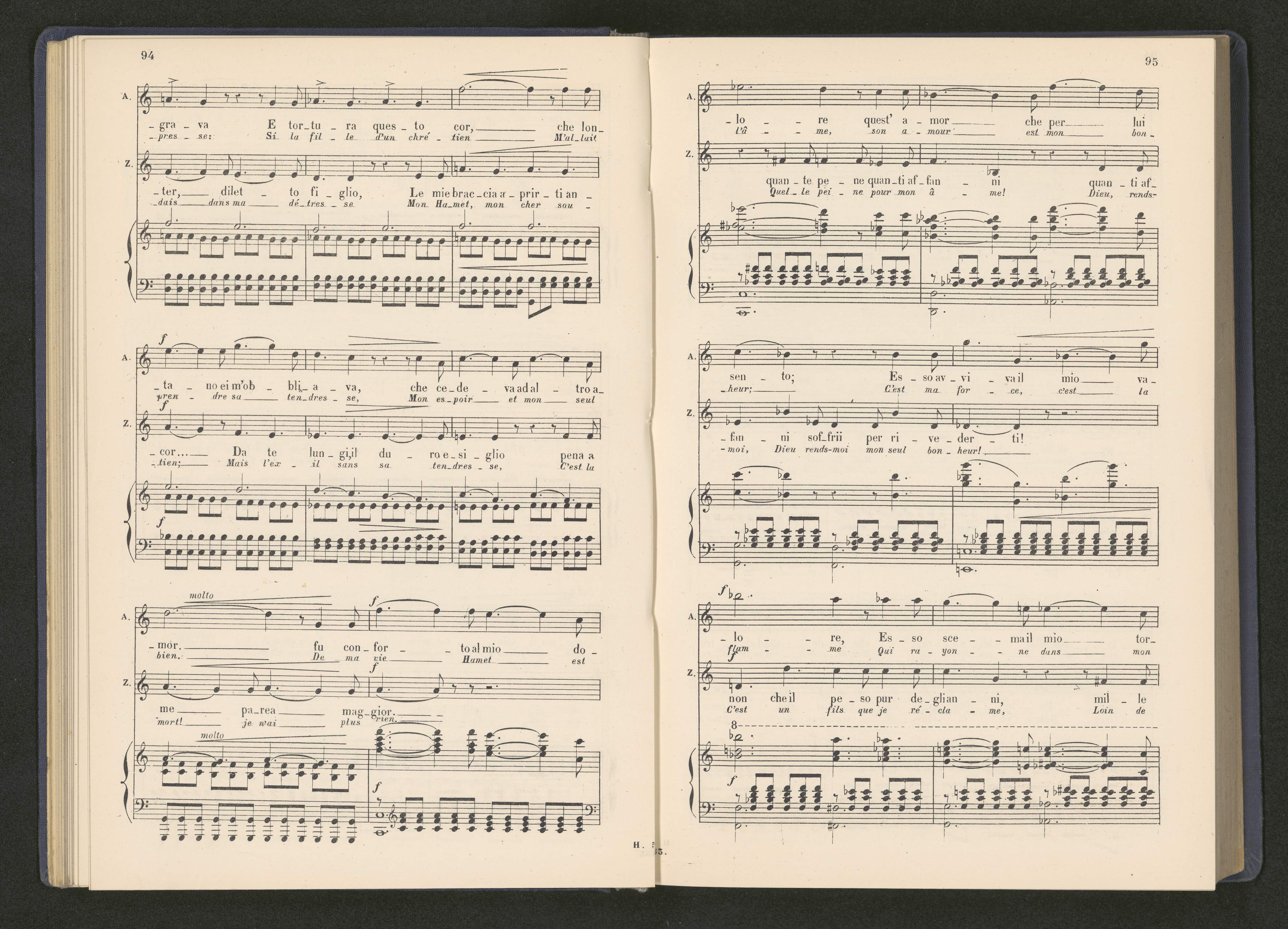 THÉÂTRE-ITALIEN DE PARIS | ABEN-HAMET | Opéra en quatre Acts et un Prologue | DE MM. | LÉONCE DÉTROYAT ET A. DE LAUZIERES Musique de | PARTITION ITALIENNE | POUR CHANT ET PIANO | Prix net : 20 Francs | 1884 | PARIS | AU MÉNESTREL, 2 bis, rue Vivienne, HENRI HEUGEL | ÉDITEUR-PROPRIÉTAIRE POUR TOUS PAUS | Droits de reproduction, de tradiction et de représentation réservés