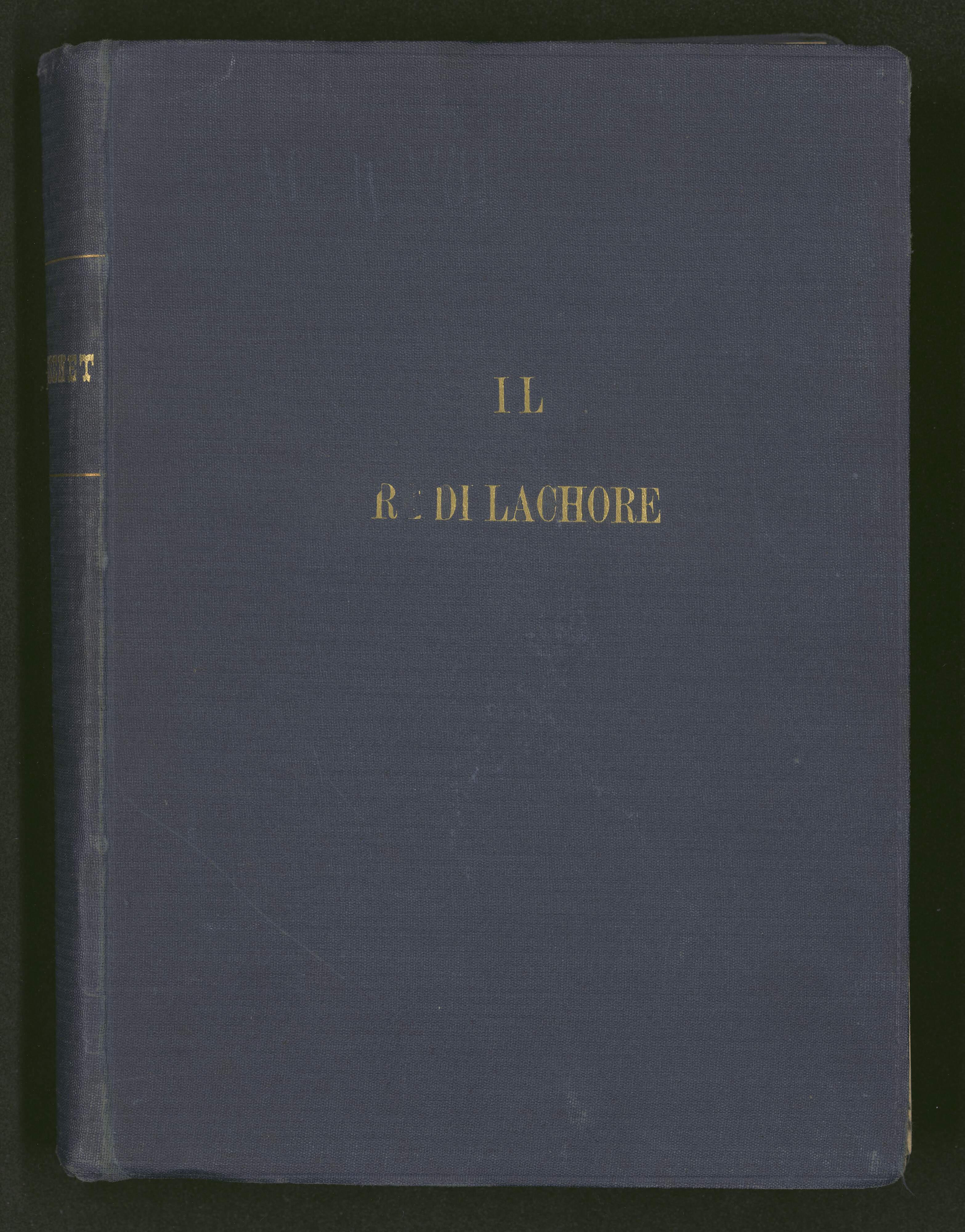 [title page:] IL | RE DI LACHORE | OPERA IN 5 ATTI | DI | LUIGI GALLET | MUSICA DI | GIULIO MASSENET | Rappresentata per la prima volta al Teatro dell' Opéra di Parigi il 27 Aprile 1877. | VERSIONE RITMICA DAL FRANCESE DI | A. ZANARDINI | OPERA COMPLETA | PER CANTO E PIANOFORTE netti Fr.15 - PER PIANOFORTE SOLO netti Fr. 8 | EDIZIONI RICCORDI | MILANO | NAPOLI [space] FIRENZE | ROMA | LONDRA | 265. REGENT STREET W