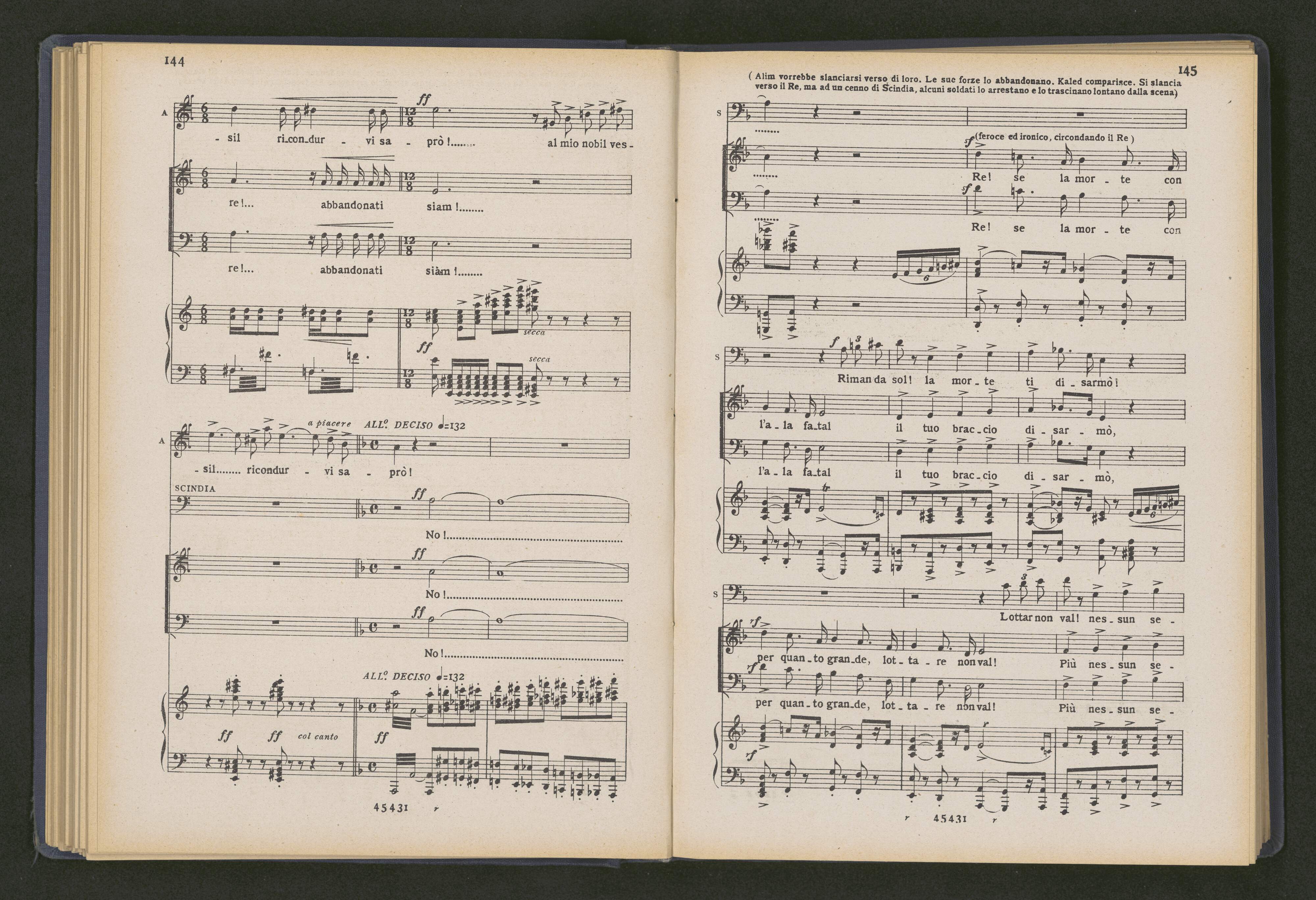 [title page:] IL | RE DI LACHORE | OPERA IN 5 ATTI | DI | LUIGI GALLET | MUSICA DI | GIULIO MASSENET | Rappresentata per la prima volta al Teatro dell' Opéra di Parigi il 27 Aprile 1877. | VERSIONE RITMICA DAL FRANCESE DI | A. ZANARDINI | OPERA COMPLETA | PER CANTO E PIANOFORTE netti Fr.15 - PER PIANOFORTE SOLO netti Fr. 8 | EDIZIONI RICCORDI | MILANO | NAPOLI [space] FIRENZE | ROMA | LONDRA | 265. REGENT STREET W
