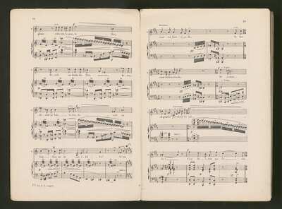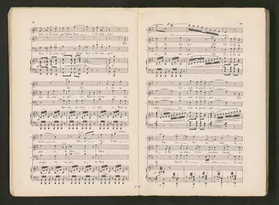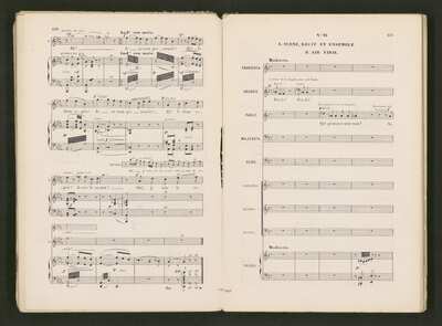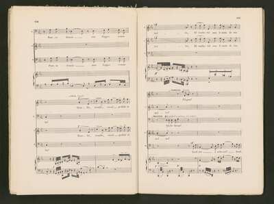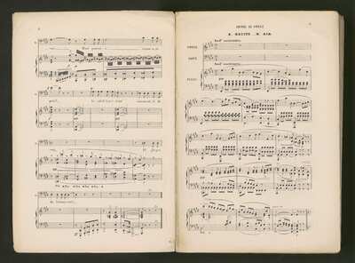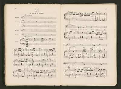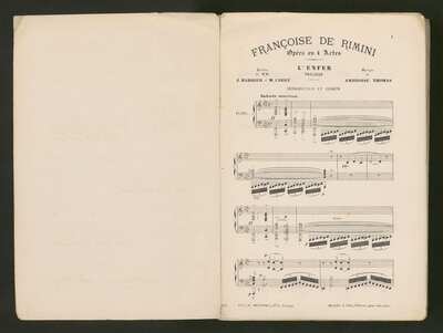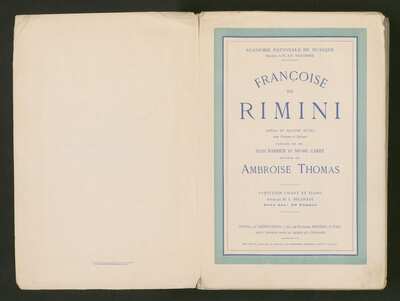 [title page:] 2|me EDITION | ACADÉMIE NATIONALE DE MUSIQUE | FRANÇOISE | DE | RIMINI | OPERA EN QUATRE ACTES | PAROLES, DE MM. | JULES BARBIER ET MICHEL CARRÉ | MUSIQUE DE | AMBROISE THOMAS | Partition Chant et Piano | Net: 20 Francs. | PARIS, AU MÉNESTREL, 2 bis, rue Vivienne, HEUGEL ET FILS | SEULS ÉDITEURS POUR LA FRANCE ET L'ÉTRANGER | Tous droits de reproduction, de traduction et de publication expressement réservés en tous pays, [title page II:] FRANÇOISE | DE | RIMINI | OPERA EN QUATRE ACTES, Françoise de Rimini Coro, V(x), pf