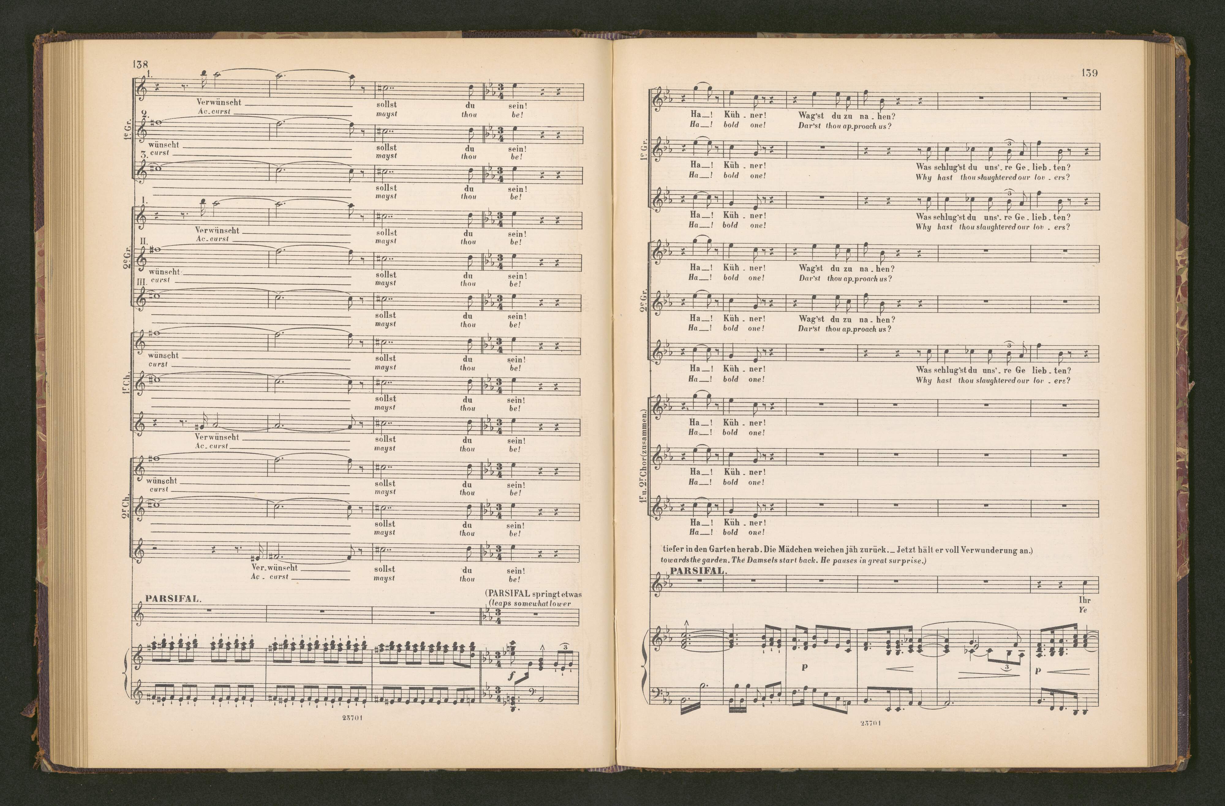 [title page:] Parsifal | Ein Bühnenweihfestspiel | von | Richard Wagner. | With an English Translation by | H. & F. CORDER | Vollständiger Klavierauszug | Erleichterte Bearbeitung | von | R. Kleinmichel. | NEW-YORK, G. SCHIRMER | 35. Union Square (Westside.) | 23701