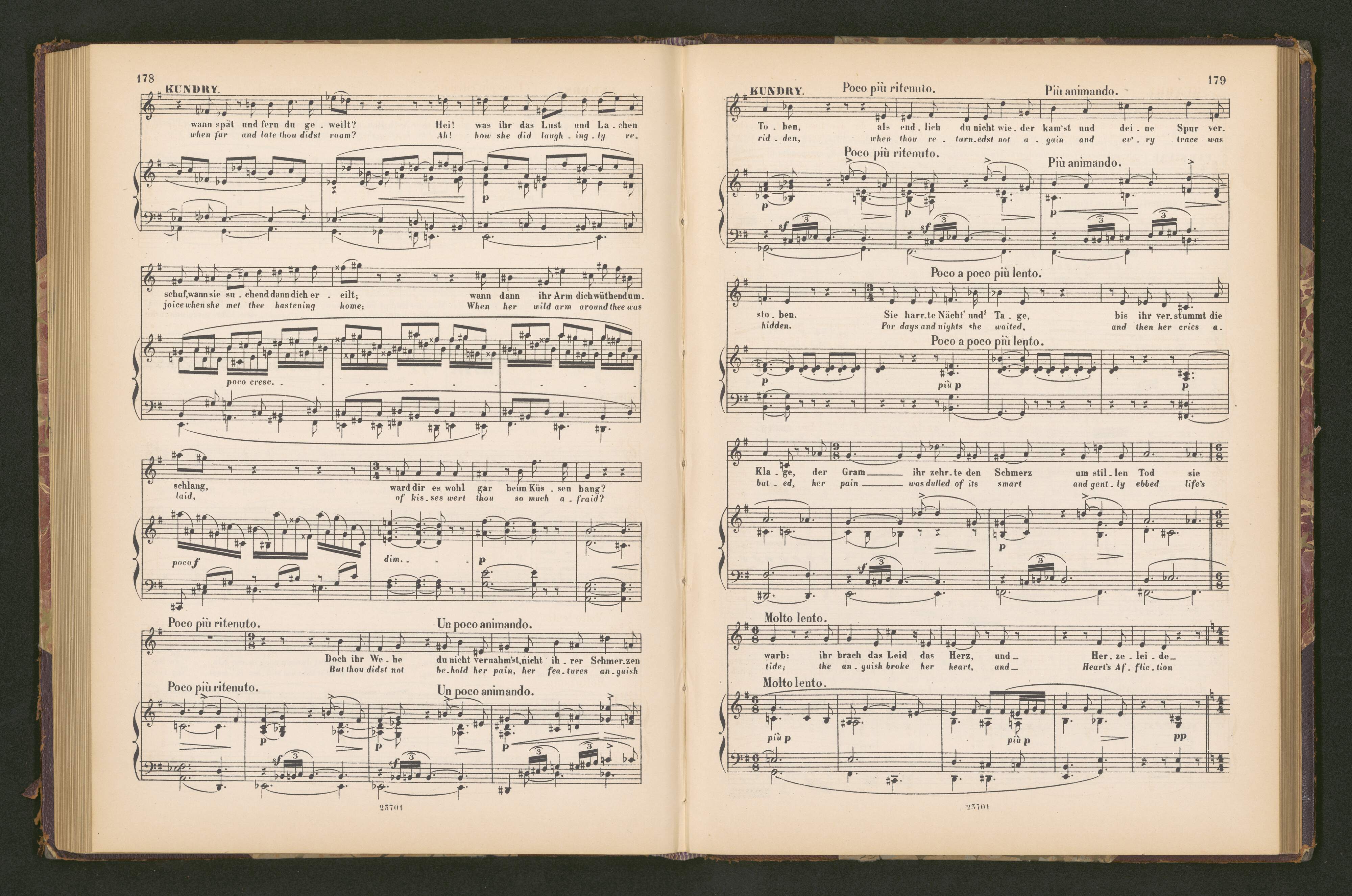 [title page:] Parsifal | Ein Bühnenweihfestspiel | von | Richard Wagner. | With an English Translation by | H. & F. CORDER | Vollständiger Klavierauszug | Erleichterte Bearbeitung | von | R. Kleinmichel. | NEW-YORK, G. SCHIRMER | 35. Union Square (Westside.) | 23701